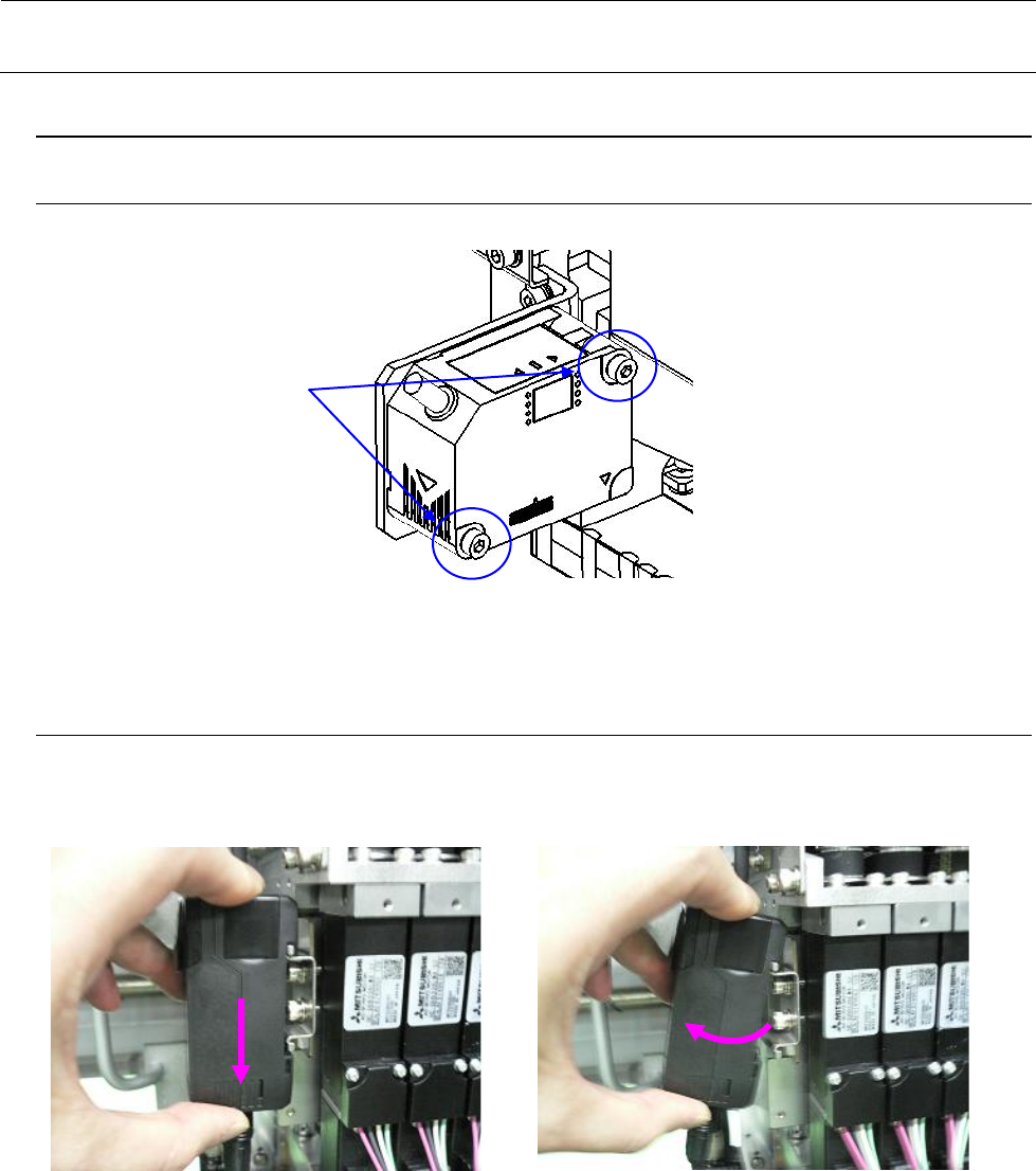 维修调整要领书 3-3 3-2 . HMS 的更换 3-2 -1 . HMS 头部的更换 图 3 -2- 1-1 HM S 头部的更换 3-2 -2 . 放大器的更换 将放大器推到下方后( ① ),向左侧旋转( ② ),从 HMS 放大器底座上拆下。 装配请按相反的步骤进行。 图 3 -2- 2-1 放大器部的更换 SM6032502TN (× 2 ) 内六角螺栓 M3 × 25 ① ②