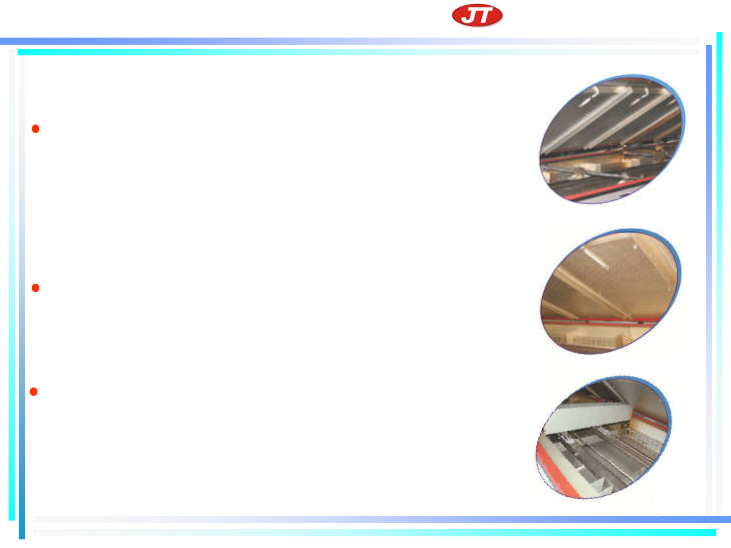 深圳市 劲拓自动化设备股份有限公司 SHENZHEN JT A UTOMA TION EQUIPMENT CO.,LTD. 采用上下独立温控和风速可调设计,满 足各种高精 度无铅焊接工艺要求。 4 )系统 详介 加热系 统特点 整流板采用原装美国进口 8mm 铝板,新型高效的 加 热风道及加长的有效加热区,使热传到 均匀充分, 大大的提高了加热效率和均匀性。 新型炉膛设计有效的缩小了大小元件的 温差,确保 焊点可靠性的同时,消除了对元件…