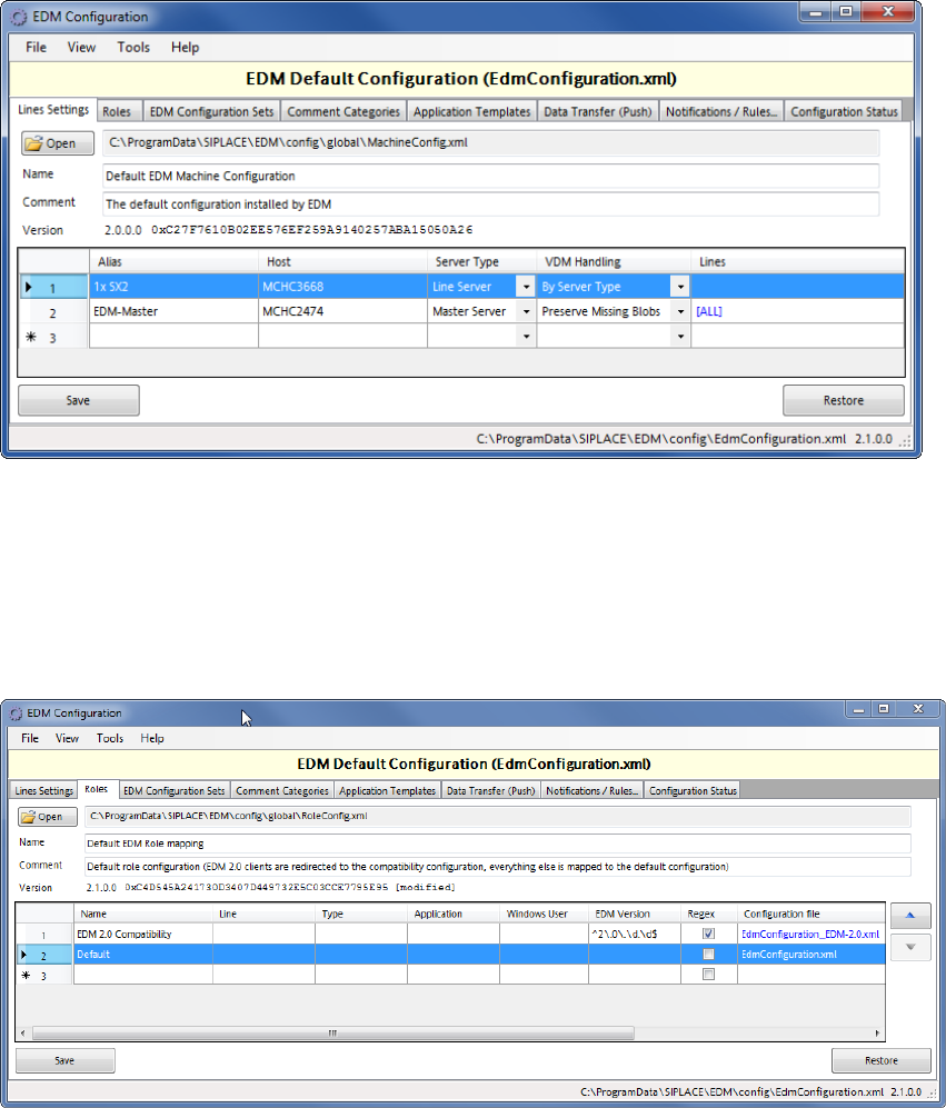 The Roles tab defines which configuration set shall be sent to the EDM Clients.