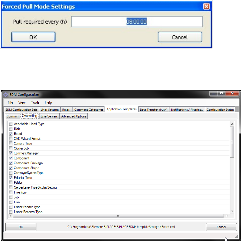 EDM V2.1 / I nstallat ion Ma nual Ausgabe 11/2012 E dition 31 Forced pul l mod e For this t ype of dat a transfer , the tim e after which th e data pre paration en gineer wi ll be notifie d that no new d ata has been pul…