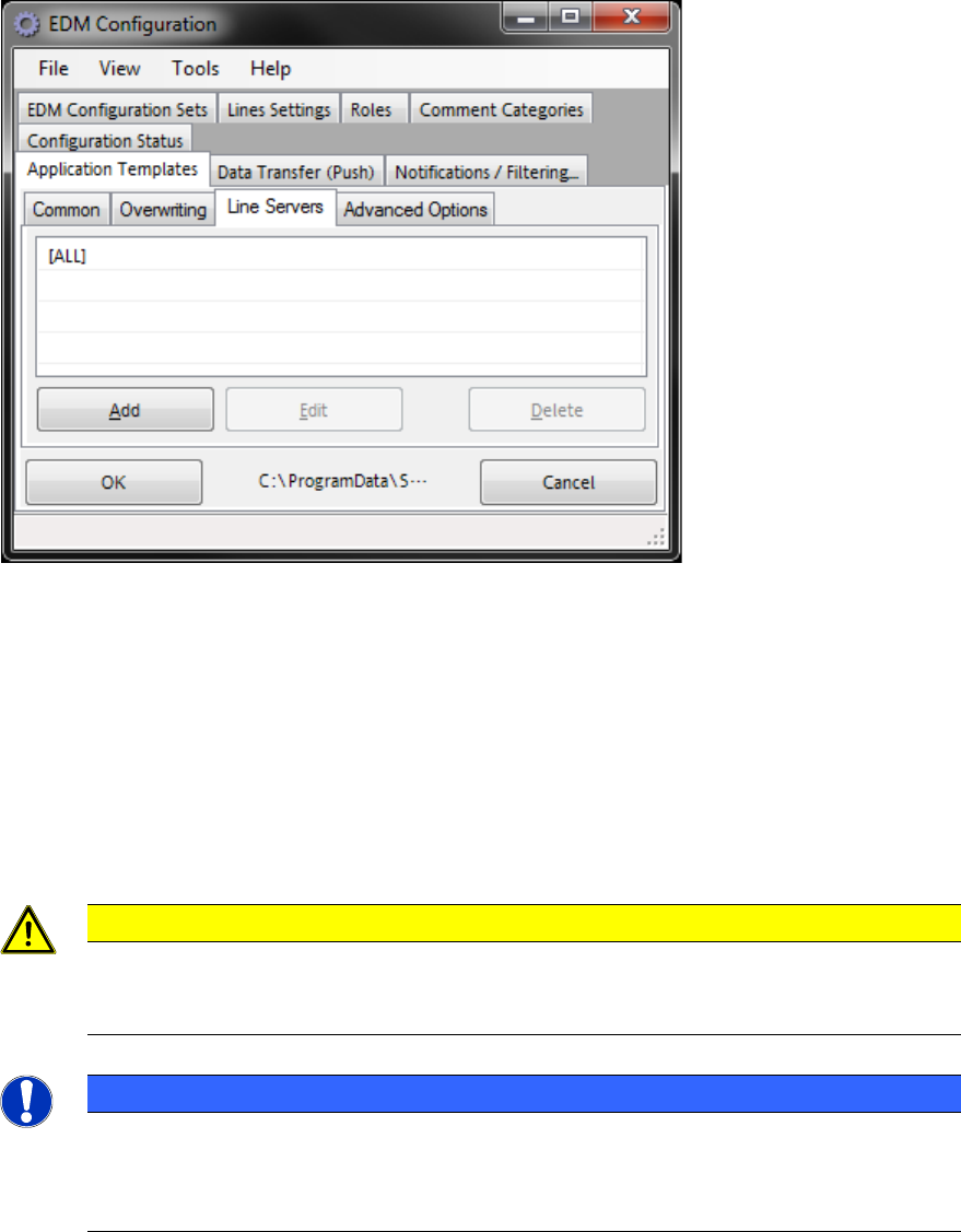 Here you specify the list of Line Servers for which the application template has to be applied.
