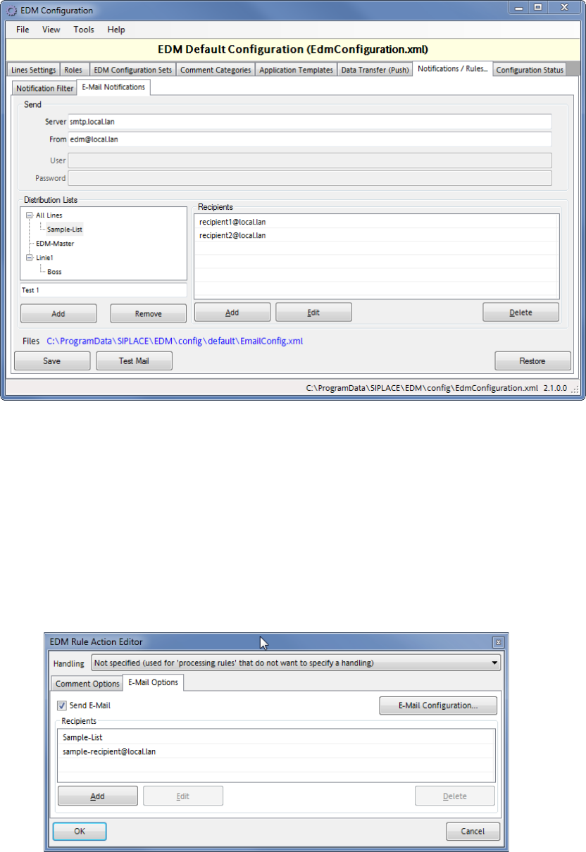 EDM V2.1 / I nstallat ion Ma nual Ausgabe 11/2012 E dition 37 NOTICE As the rule actions define the c onditions f or send ing em ail messages , line - base d recipient lists sho uld be avoid ed. Instead, us e “All L ines…