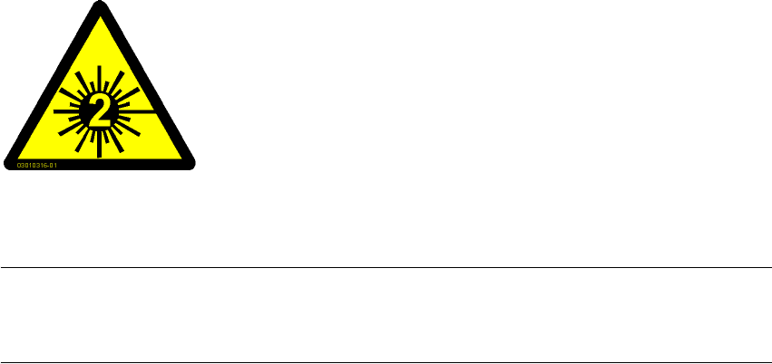 Cartello d'avvertenza W216 "Classe laser 2" sul rivestimento del lato d'entrata del CS,