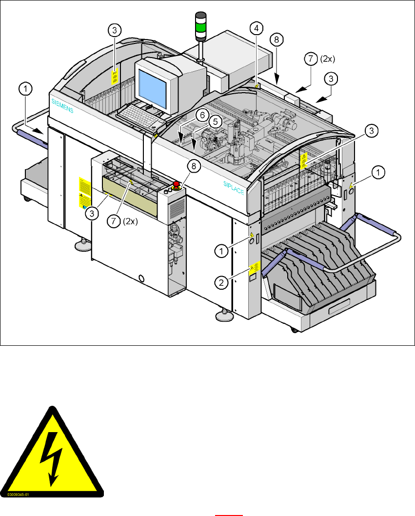 L'immagine seguente mostra la posizione dei cartelli d'avvertenza nella macchina base. 2