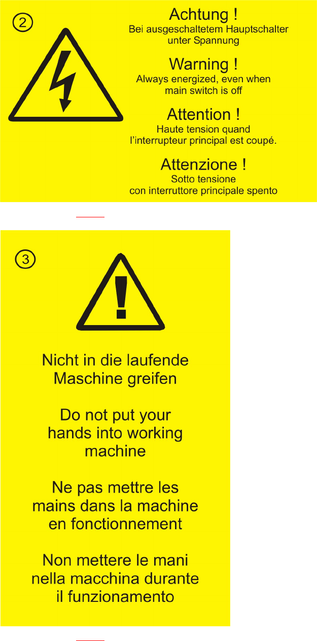 Fig. 2.2 - 1 Cartelli di avvertenza nella macchina base - parte 1