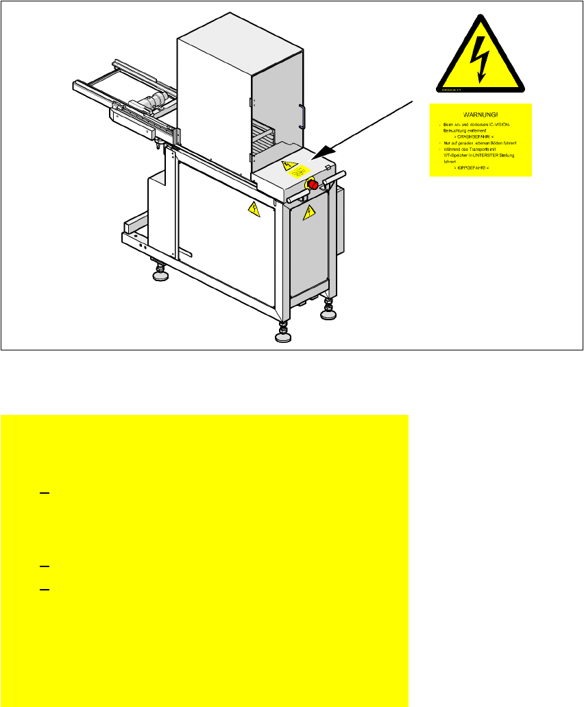 Fig. 2.2 - 9 Cartello d'avvertenza nello scambiatore automatico di vassoi (SAV)