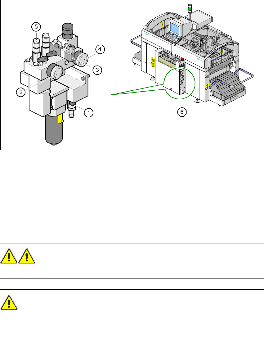 Manuale per l'uso SIPLACE F5 HM Versione software SR.408.xx 2 Sicurezza d’esercizio Edizione 03/2006 IT 2.7 Blocc o dell'alimentazione dell'aria compressa e diminuz ione della pressione 59 2.7 Blo cco dell…