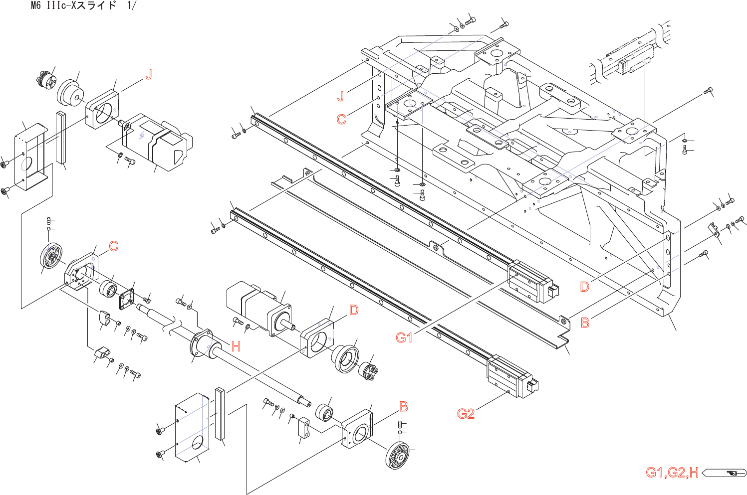 M6 IIIc-X SLIDE 1/ M6 II Ic-Xスラ イド 1/ 2UGZSG0001 27 No. Drg.No. & Cod e No. QT Y Description Ra ting Re marks 番号 図番 & コード番号 個数 品名 規格 備考 1 2MGZS G000106 1 SL IDE, Y-AXIS スライ ド Y 軸 2 H5426 N 4 BOLT , HEX SOCKE T ボ…