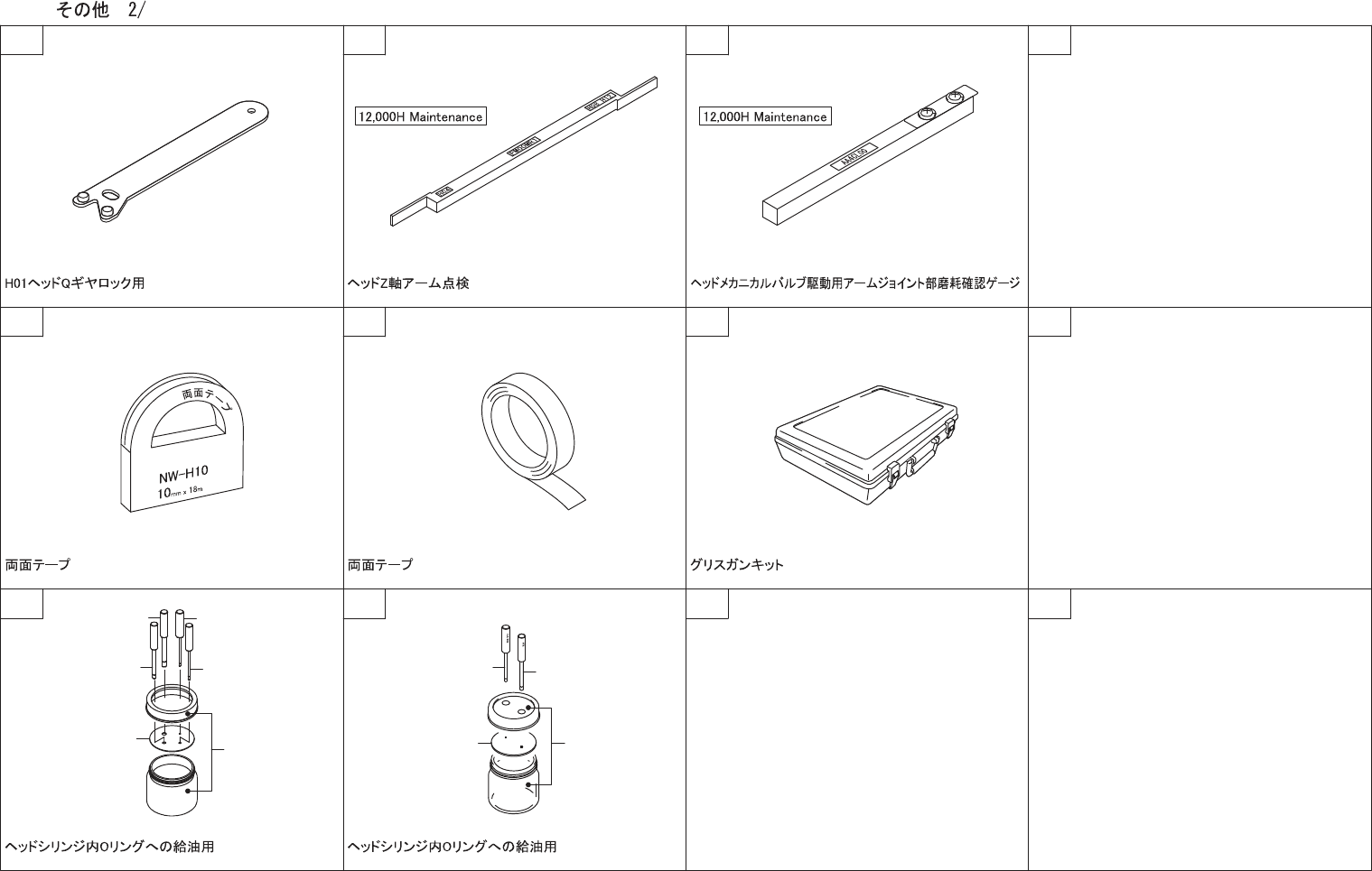 OTHERS 1/ その 他 1/ No. Drg.No. & Cod e No. QT Y Description Ra ting Re marks 番号 図番 & コード番号 個数 品名 規格 備考 A1 AA875 23 1 JIG 治具 A2 AA44K 21 1 JIG, INSPEC TION 治具 検査 A3 AA0AM 04 1 ST AND スタン ド A4 H3206 A 1 BOX , TOOL …