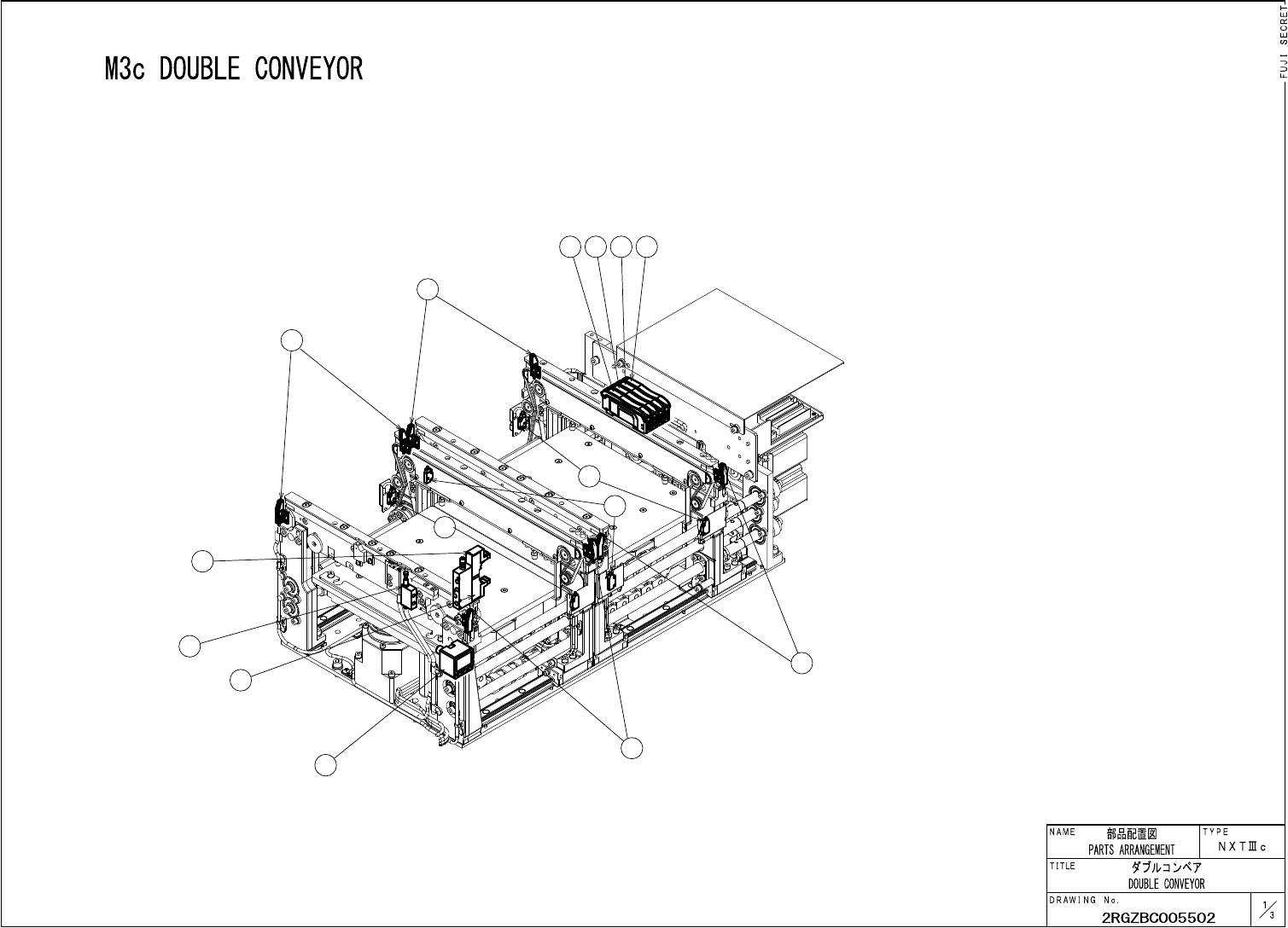2 3 4 1 5 9 6 10 7 11 8 5 6 7 8 PTS-NXT3c-07 671 部品配置図 PARTS ARRANGEMENT N A M E T Y P E N X T I c DOUBLE CONVEYOR T I T L E D R A W I N G N o . X 2 RGZBC 005502 M 3 c DOUBLE CONVEYOR O - iLLIQ ; oLLIs l - JnLL