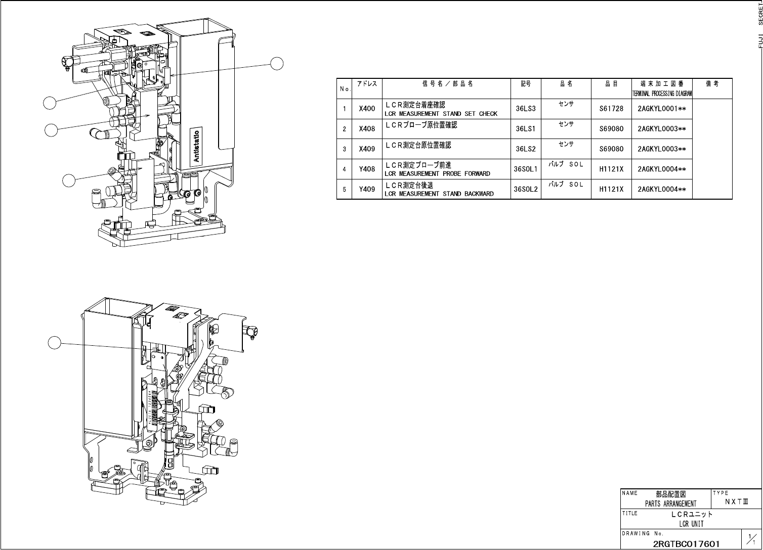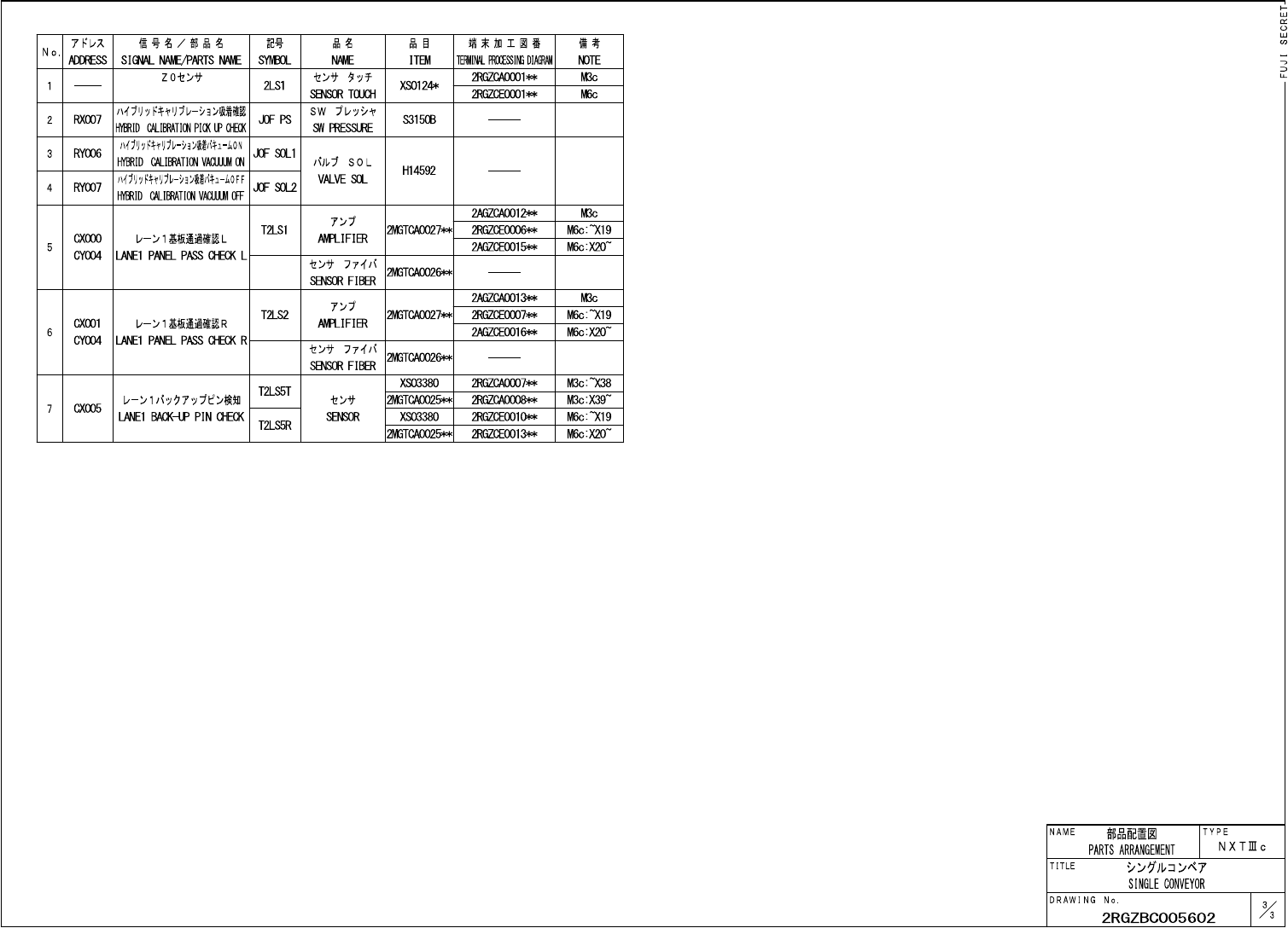 Z Z E R O S E N S O R PTS-NXT3c-07 676 部品配置図 PARTS ARRANGEMENT N A M E T Y P E N X T I c SINGLE CONVEYOR T I T L E D R A W I N G N o . 2 RGZBC 005602 備 考 7 K I / X ADDRESS 信 号 名 / 部 品 名 記 号 品 名 端 末 加 工 図 番 mm . FR 3 …