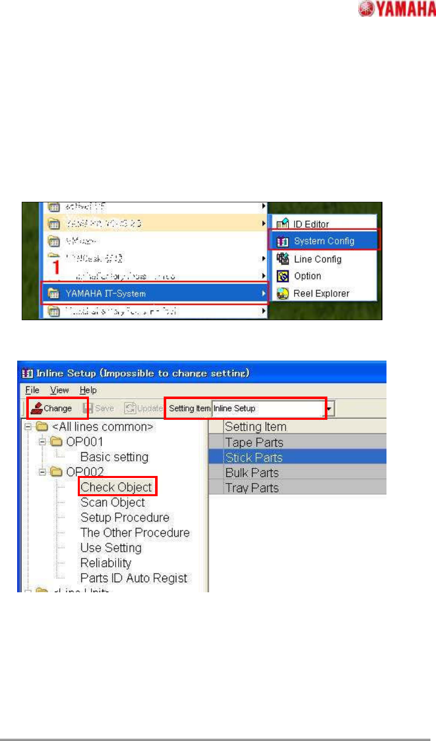 2. Select [Inline Setup] on [Setting Item] tool bar in the window of System Config.