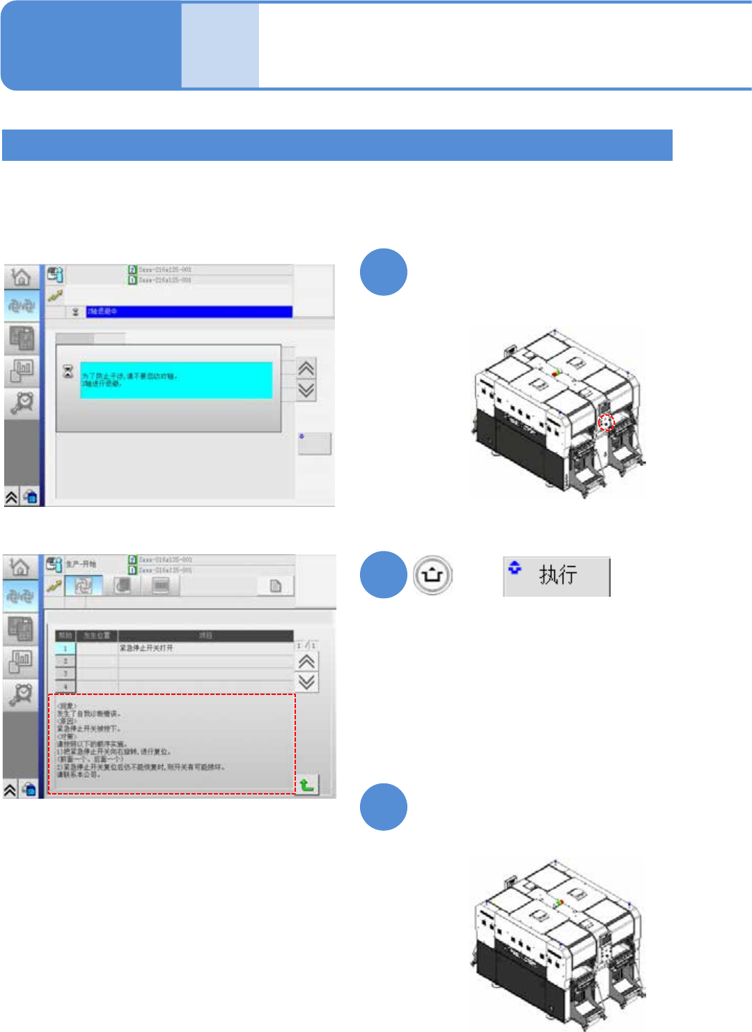 按后侧的紧急停止开关,并确认画面