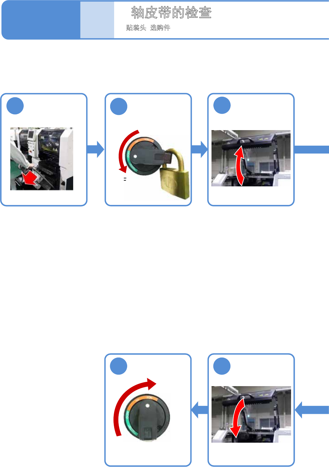 EJM8DC-MB-04E-0 1 NPM-DX NPM-DX 4-12 -2 ●请确认扭矩旋转是否顺畅 。 ●扭矩旋转不顺时 ( 旋转有时不顺畅、有时顺畅 ) ,请与本公司联络。 ● θ 轴马达左右有 2 处。 2 处都请进行检查。 ● 是轻量 16 吸嘴头时,请将六角扳手插入 θ 轴滑轮中转动。 ●是轻量 8 吸嘴头 时,请直接用手指转动 θ 轴滑轮 。 ■ 轻量 16 吸嘴贴装头 ■ 轻量 8 吸嘴贴装头 θ 轴贴装头 注意 θ …