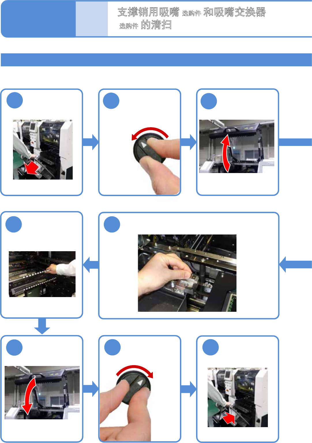 EJM8D C - MB - 04E - 00 NPM - DX 6 4 5 4- 17 -4 将供料器工作台盖 倒向内侧。 (→ P.2 - 5) 清扫吸嘴交换器的上面 ●使吸嘴凸缘的 接触面没有灰 尘等。 ●内部使用棉棒 ,表面使用棉 纱布等清扫。 ●确认吸嘴交换 器上盖和吸嘴 交换器上面的 缝隙间是否 有灰尘等夹住。 吸嘴交换器 棉纱布 卸下支撑销用吸嘴