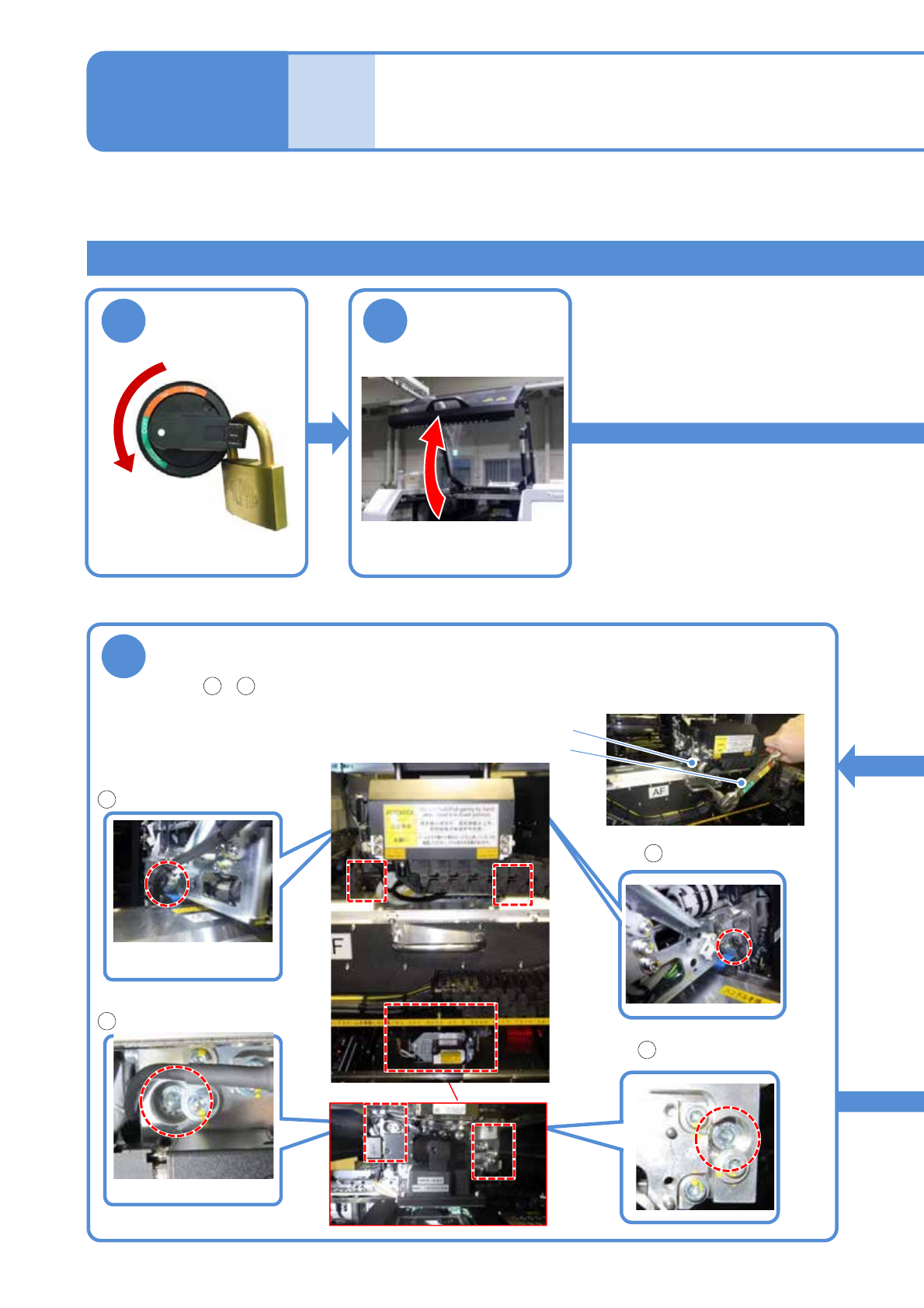 EJM8DC-MB-09E-0 1 NPM-DX 贴装头和吸嘴交换器的 更换 4 贴装头的安装 5 9-1 -7 工程师手册 9-1 1 2 1 3 4 2 OFF 所需时间 : 10 分钟 ( 只 包括贴装头的安装时间 ) 拧紧螺栓固定贴装头 ●按照 ~ 的顺序,使用扭矩扳手、长钻头把固定螺栓 (4 处 ) 拧紧。 ●拧紧扭矩规格值 : 9.8 ± 0.5 N·m 1 4 贴装头右下部 贴装头右上部 贴装头左上部 扭矩扳手 长钻头 贴…