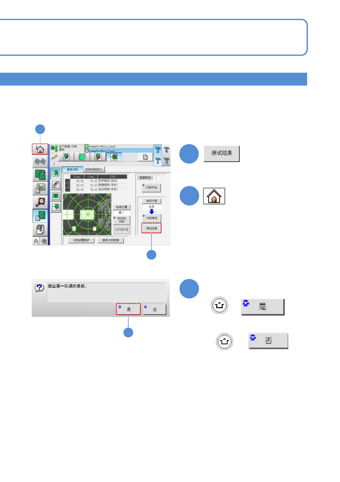 EJM8DC-MB-12E-0 2 NPM-DX 12-2-2 -6 16 + 17 + 15 确认提示 ●可以转移到其他画面。 ■再次确认数据时 ( 识别标记的测试结果再次显示 ) ■不传出基板时 16 17 15