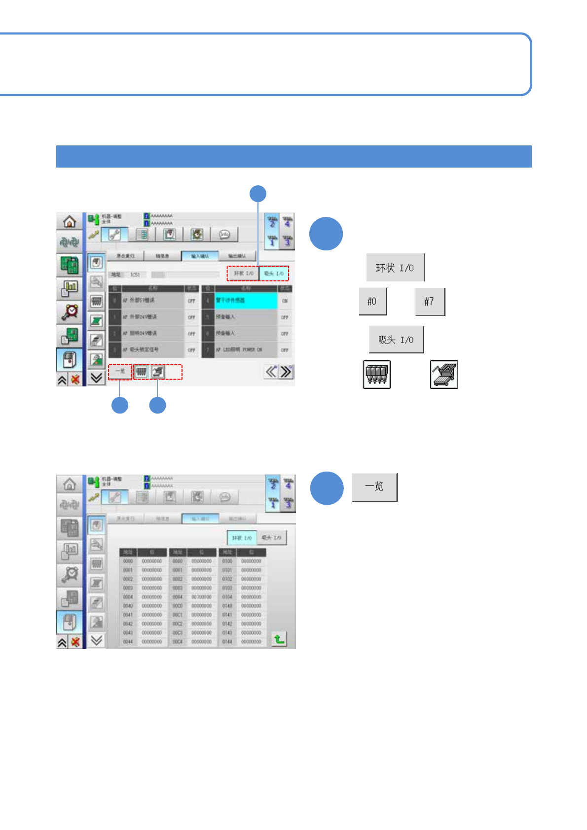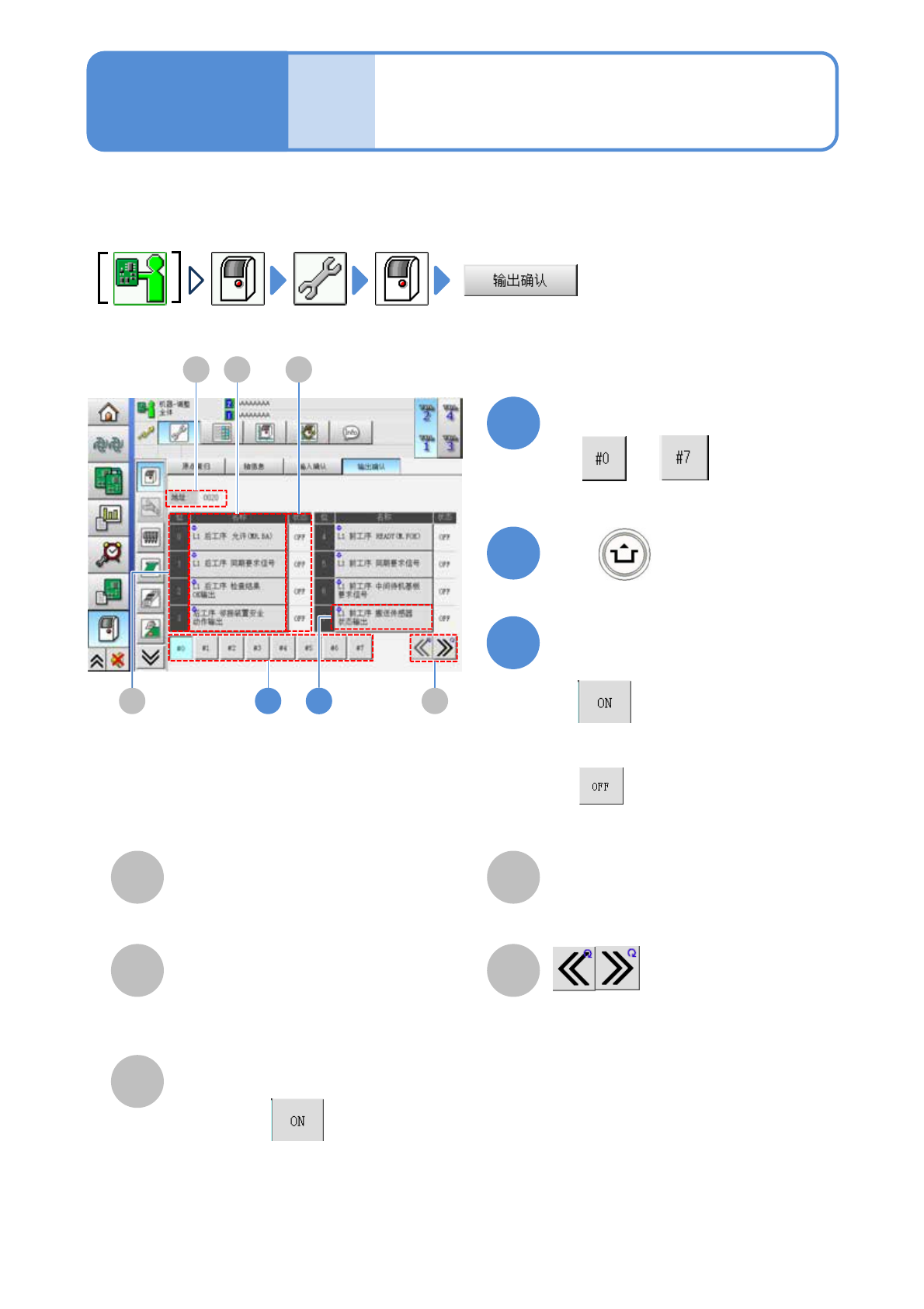 EJM8DC-MB-13E-0 3 NPM-DX 单元调整 输出确认 13-2-4 -1 2 1 B A C D E 3 工程师手册 13-2-4 D A 1 C E B 2 设备中使用的所有输出地址的状态以各 BIT 名称表示 ,确认其名称,根据需要来切换 ON 或 OFF 。 ■「输出确认」画面 选择路径 按住 的同时, 按「名称」 变更状态 ■设定为有效时 ■变更各 BIT 的状态时 ■设定为无效时 从 至 中的某一项 地址 位 …