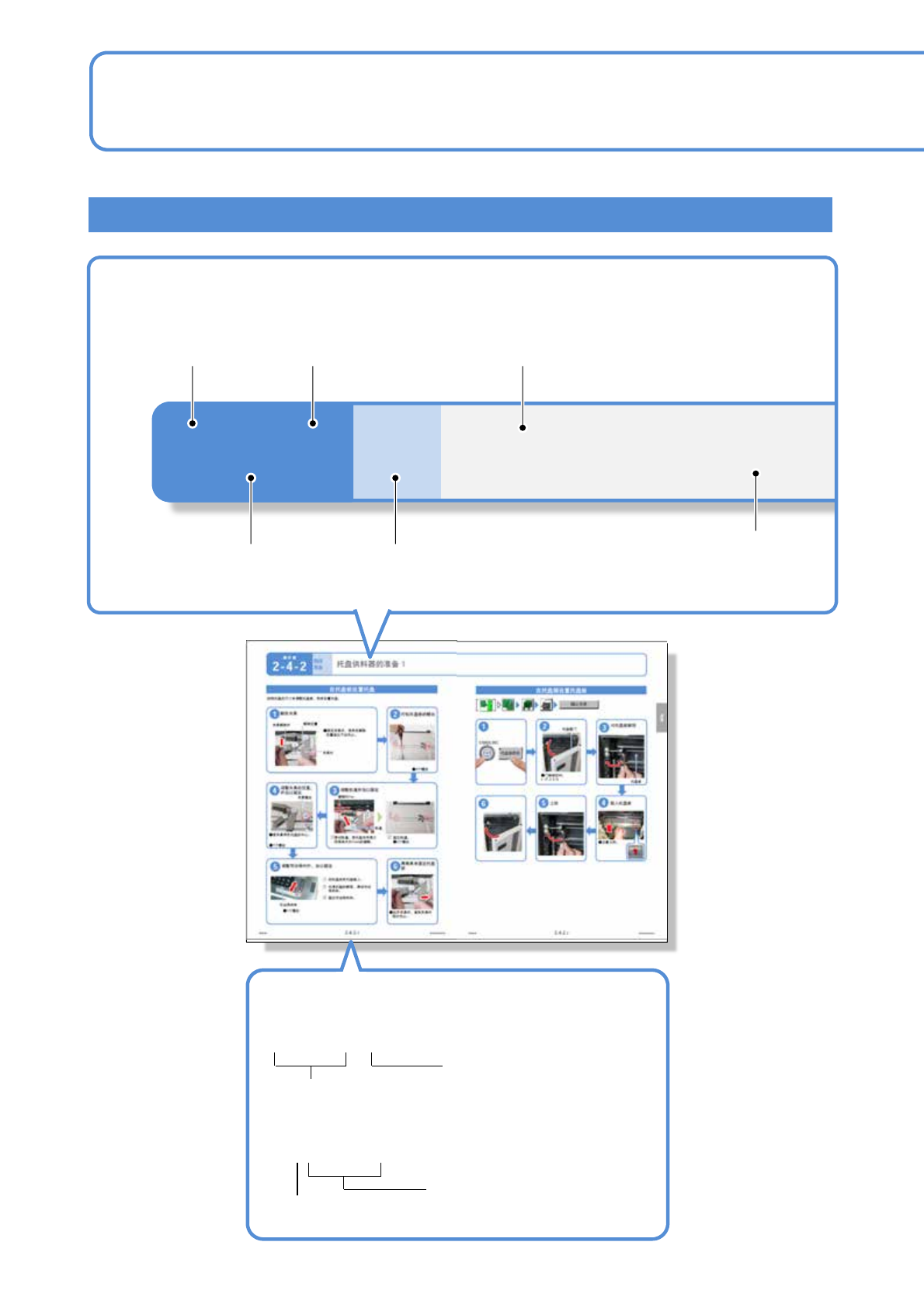 NPM-DX EJM8DC-BP-01N-04 托盘供料器的准备 1 本说明书的用法 … 1 题目/索引/页码 题目 大分类编号 离线准备 作业 中分类编号 小分类编号 中分类题目 小分类题目 下一页是 相同题目时 S-6 操作篇 2-4-2 2-4- 2 -1 页码 大 ・ 中 ・ 小分类编号 相同项目有复数页时 ■有关参阅内容 (→ P .2-3- 1) 参阅页码 表示参阅的记号