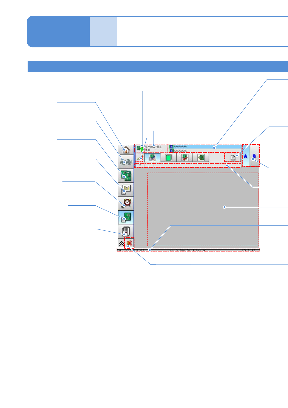 对触摸屏的各区域显示内容进行说明。(对前面的触摸屏画面进行说明。)