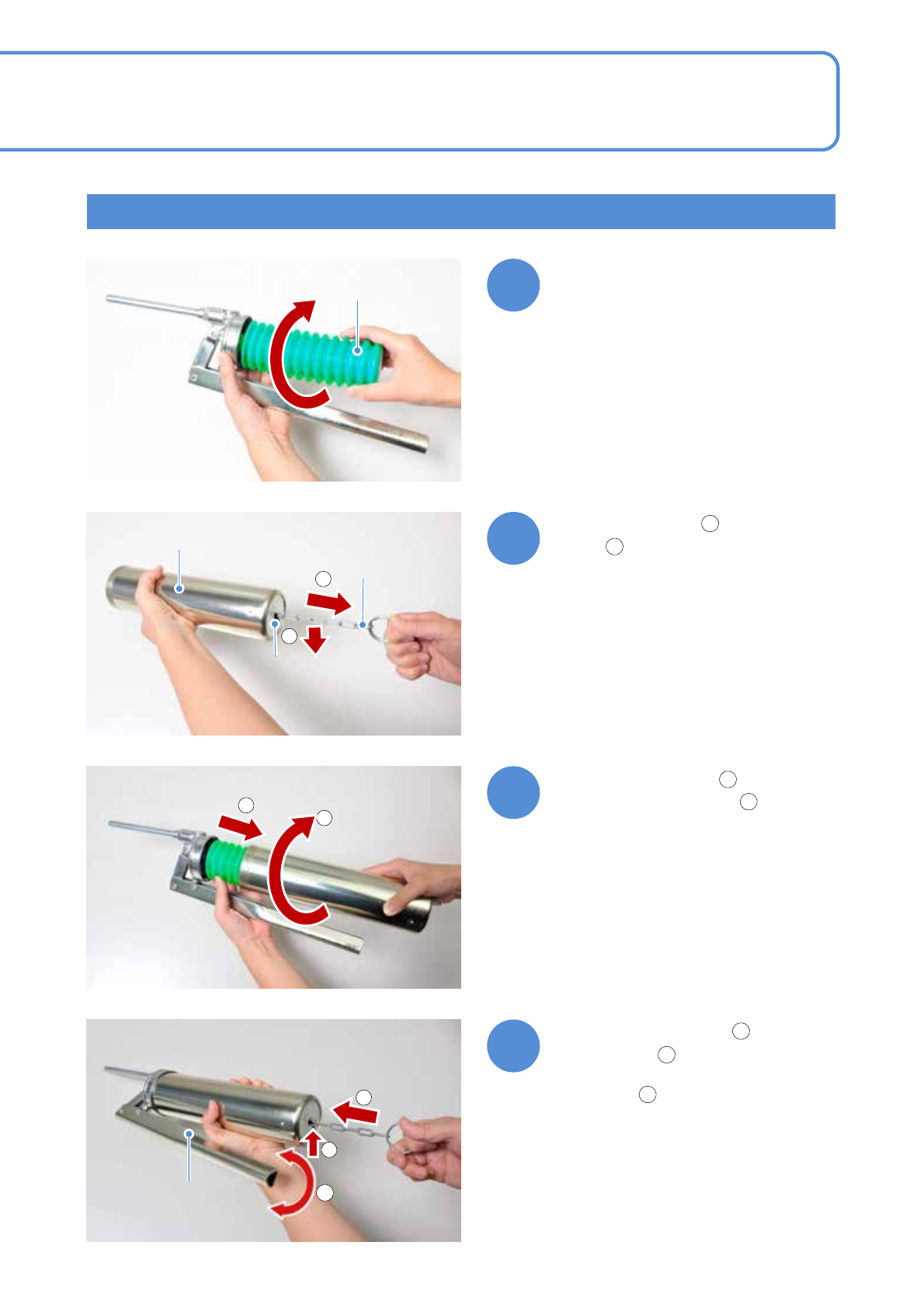 EJM8DC-MB-02C-0 1 NPM-DX 油筒芯的安装方法 2-3 -2 1 2 1 2 1 2 3 2 3 4 1 油筒芯 油筒 链子 孔 打开油筒芯的盖子, 插入卸下油筒状态的主体内 ●完全插入。 ( 若不完全插入,会漏出润滑油 ) 拉出油筒的链子 () , 上锁 () 把油筒芯放入油筒 () , 把油筒完全插入主体 () 1 2 1 2 从油筒孔把链子收起 () , 插入油筒内 () ●来回压杆 2 、 3 次,确认是否从…