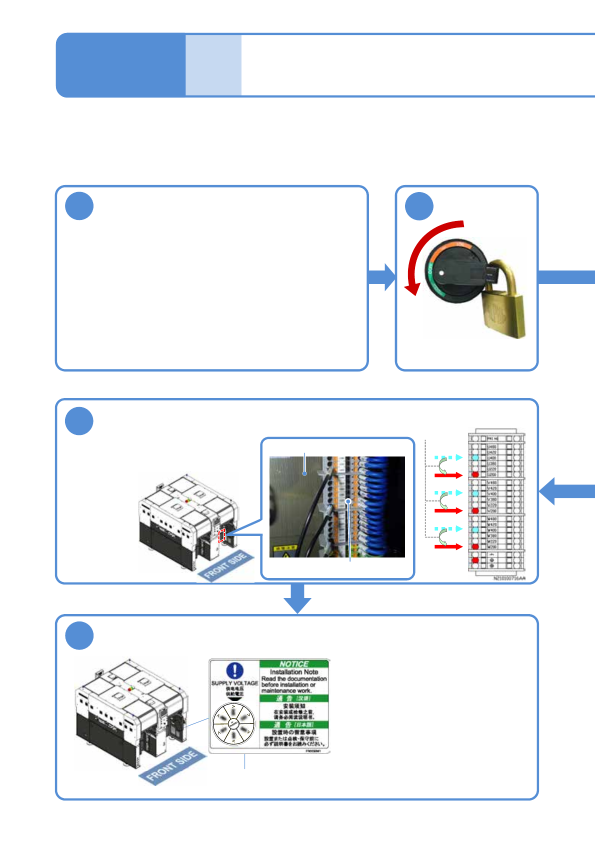 NPM-DX EJM8DC-MB-11E-0 1 主电源 的连接 调整初级电源和设备电源 的电压 1 1-4-3 -1 1 2 5 6 1. 480 V 2. 420 V 3. 400 V 4. 380 V 5. 220 V 6. 200 V 工程师手册 1 1-4-3 调换 OFF 切换初级电源的电压 ( 变压器的初级电源电压可以变更为以下电压 ) ●根据供电电压进行调整。 使用工具 : 十 字螺丝刀 (No.2) 、附属的专用螺丝刀…