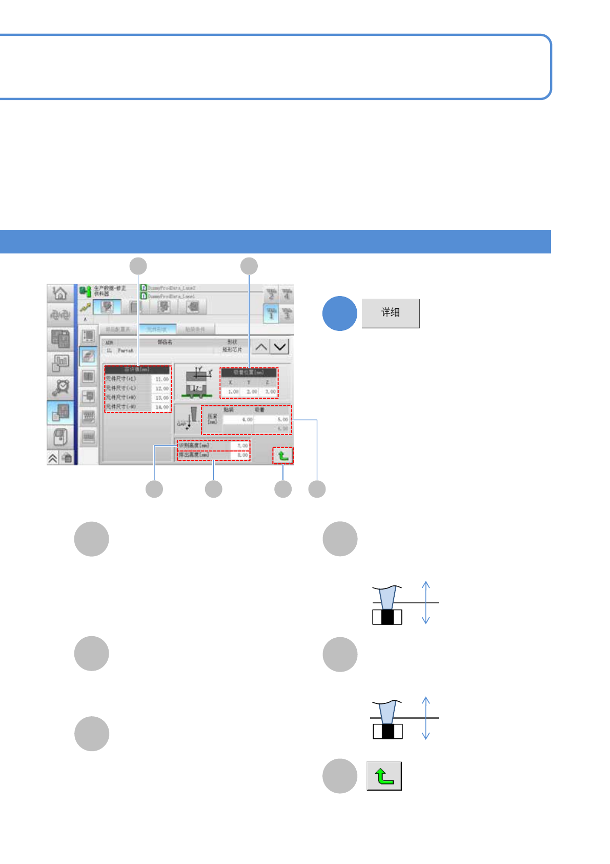 EJM8DC-MB-12E-0 2 NPM-DX 数据 修改 E G F H B C D A B C H F E 2 G D 方形芯片元件 1 12-1-8 -1 元件形状数据的修改 1 A 修改画面上的数据 ● 触摸输入部分后,会显示输入的画 面。 1 工程师手册 12-1-8 供料器的地址。 (→ 『操作手册』 P.4-2-3 -1 ) 3 ADR( 地址 ) 部品名 形状 显示前后的元件信息。 2: 右面的电极宽度。 4: 左面的…