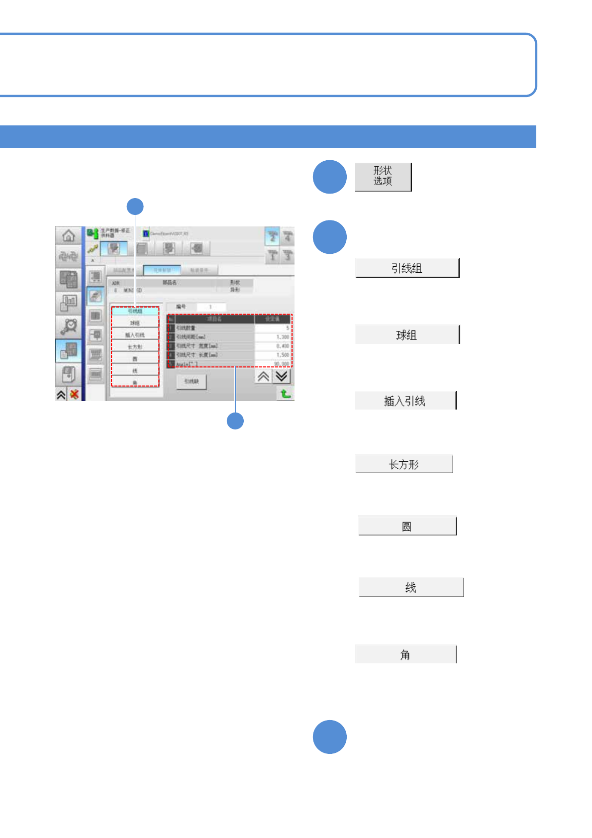 EJM8DC-MB-12E-0 2 NPM-DX 12-1-8 -14 4 5 5 6 6 ●显示与引线组信息相关的数据。 对形状选项数据进行确认、修改。 选择进行确认的项目 ●显示与球组信息相关的数据。 ●显示与插入引线组信息相关的数据 。 ●显示与长方形信息相关的数据。 ●显示与圆信息相关的数据。 ●显示与线信息相关的数据。 ●显示与角信息相关的数据。 对必要的部位进行确认、修改