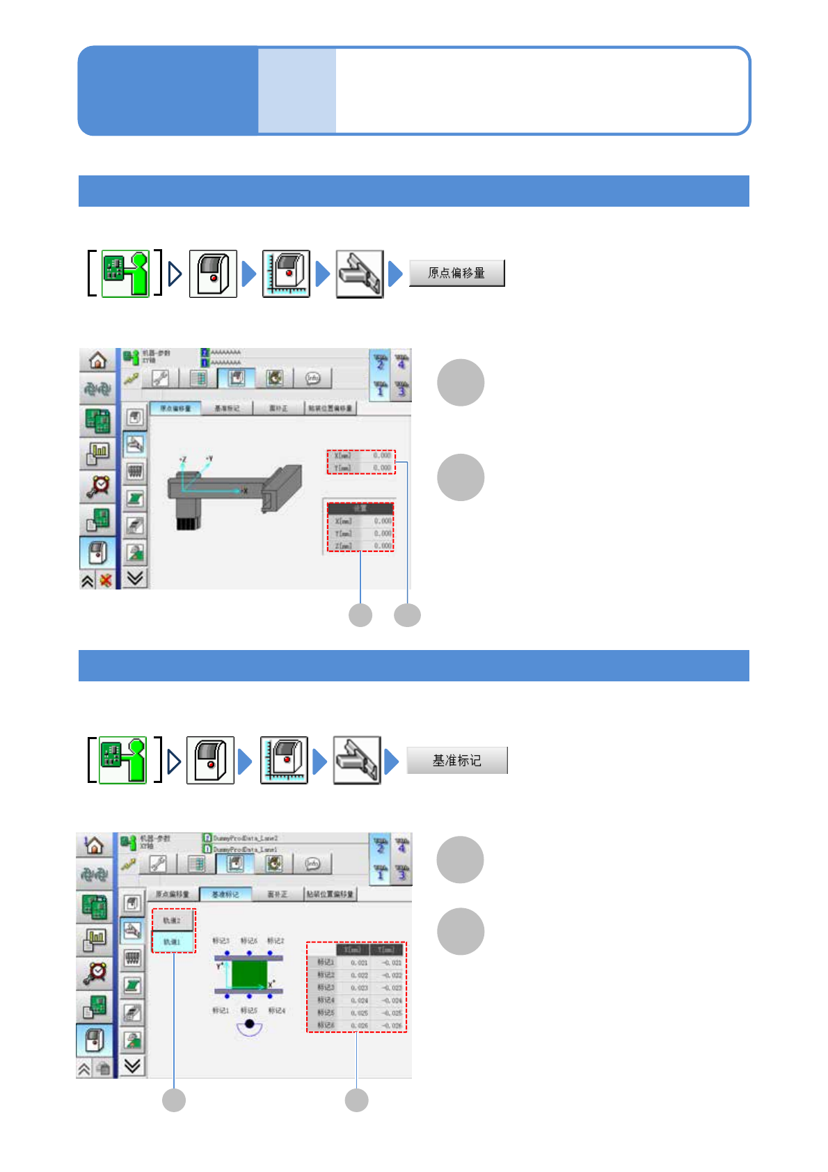 确认X轴、Y轴的原点偏移值 (校准的结果)。