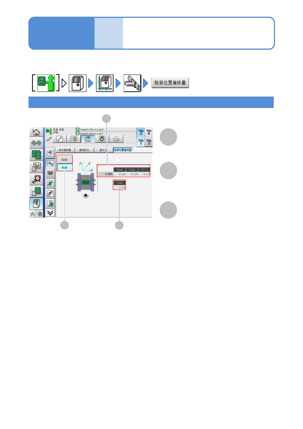 对基板识别位置和贴装位置进行补正时使用,确认贴装面的偏移值 (校准的结果)。