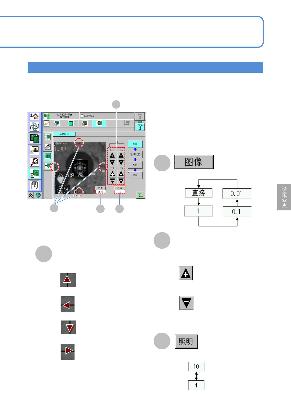 通过校正所得图像不是很清晰时调整照明(指示灯),对其调整方法进行说明。