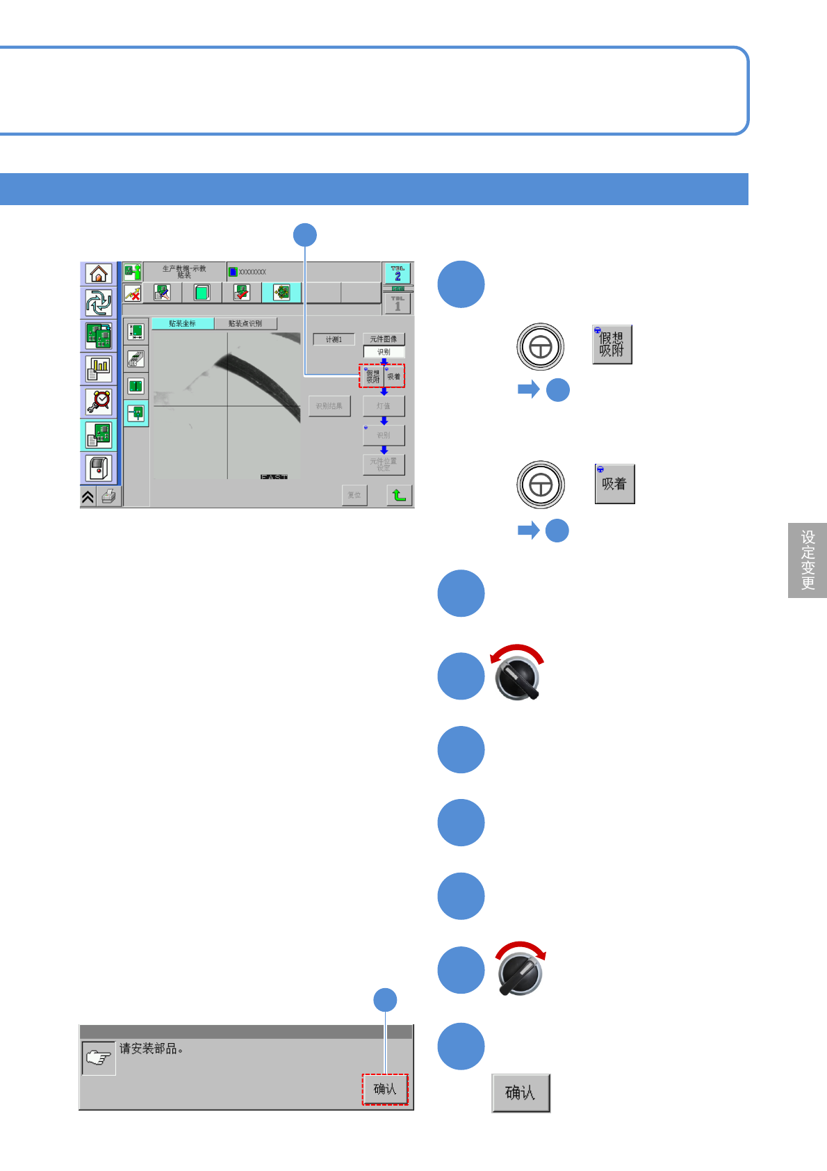 NPM-W 2 EJM7DC-MB-06O-00 生产数据 校正 操作篇 6-2-9 贴装坐标校正 10 6-2-9 -19 元件位置指定的校正 2 + ■可以识别时 至 ■识别错误或者 图像不清晰时 至 ■识别错误时 成为无效。 ■插入元件的销不易识别,需要调 整。 确认识别结果 14 14 15 15 17 18 17 17 16 16 ( → P.6-2-1 ‘ 指示灯值的调整 ’)