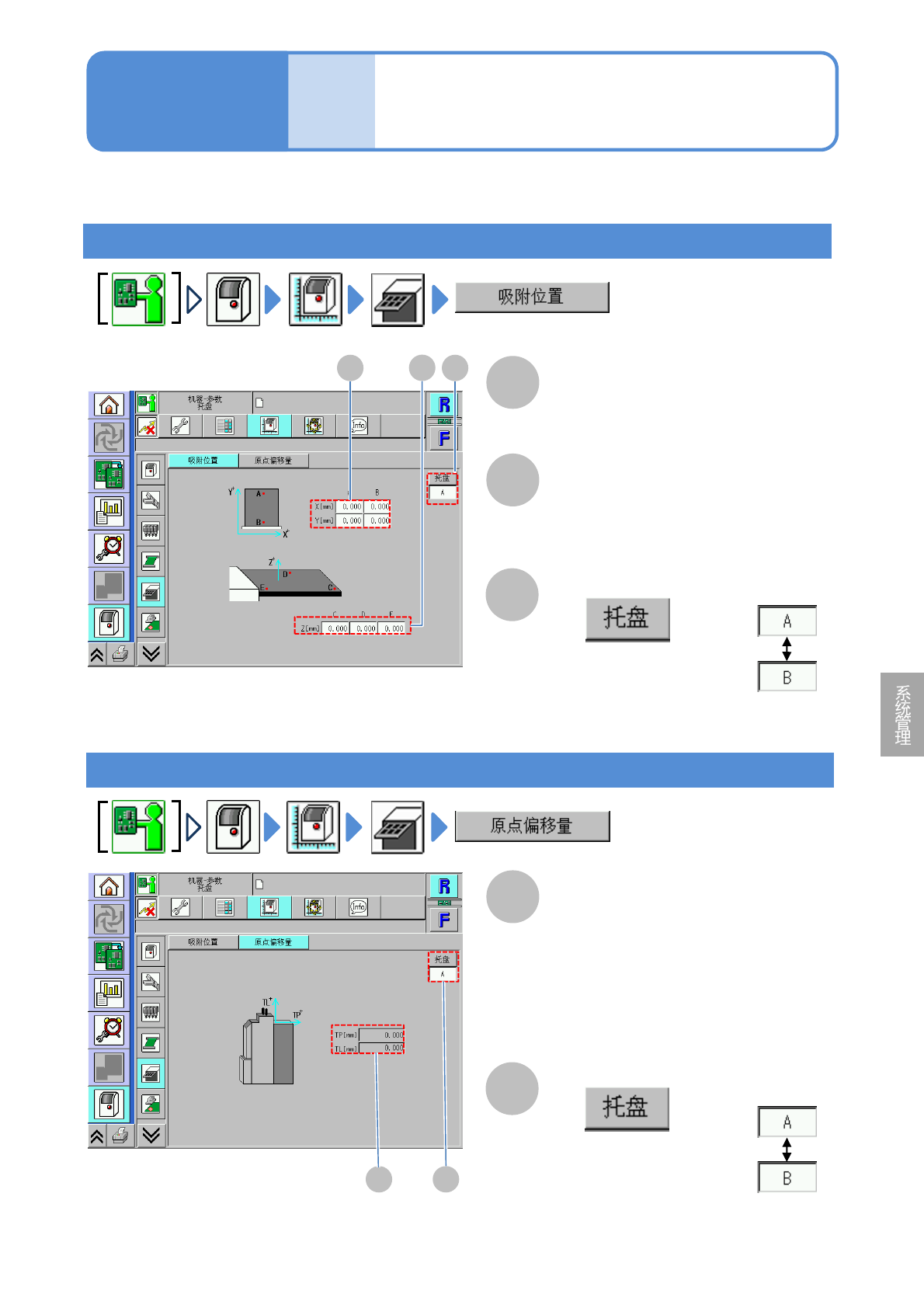 确认托盘料架的吸着位置的偏移值、TP轴和TL轴的原点偏移值。