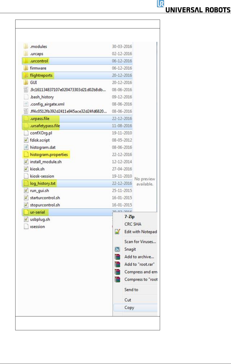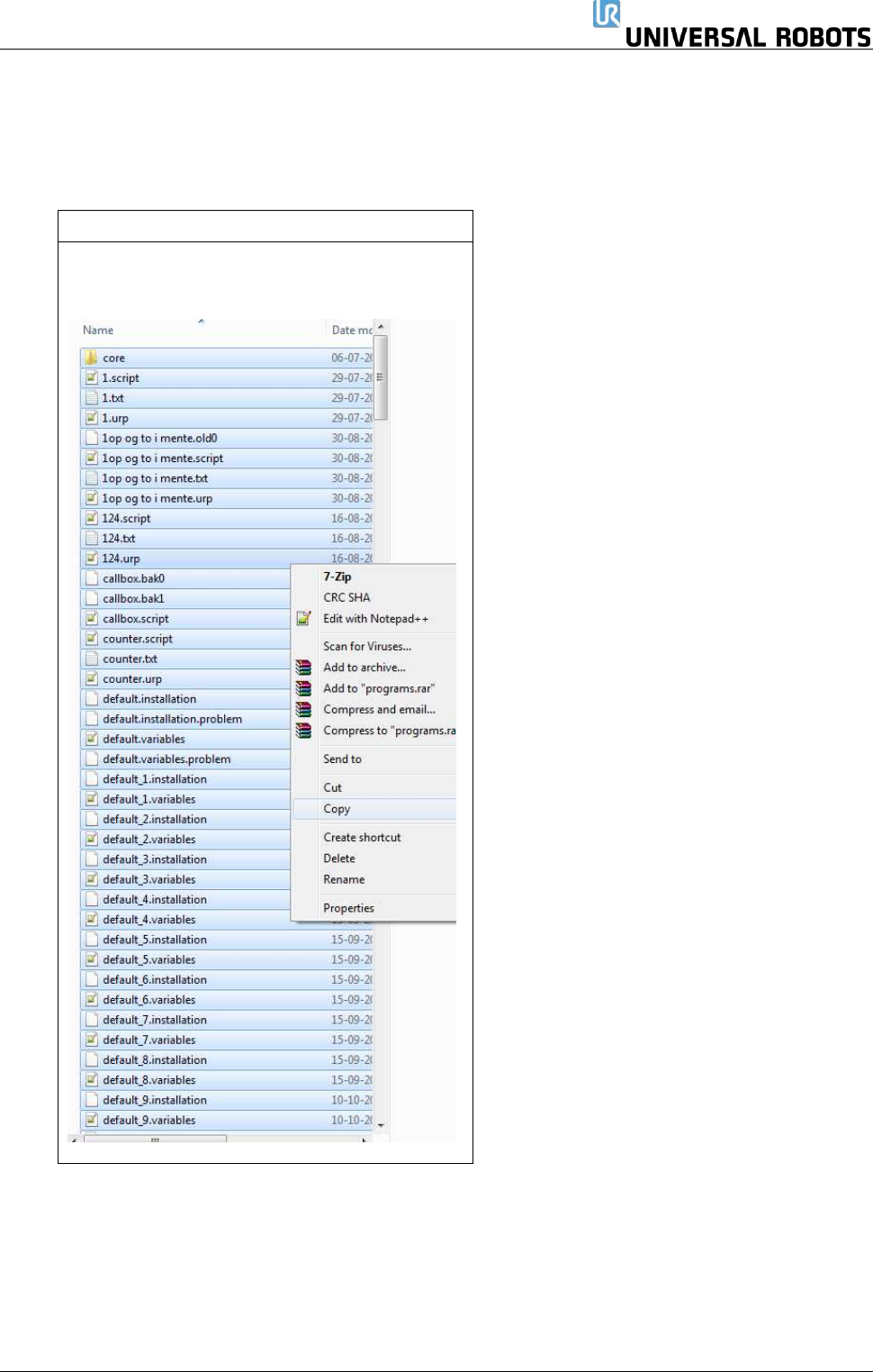 保留所有 权 利 101 Servicemanual_UR3 _en _3.2.6 CB3 导航至 UR -USB ,右键单击 “ 程序 ” 文件夹, 然后选择粘贴。 导航至 CF 卡上的根文件 夹