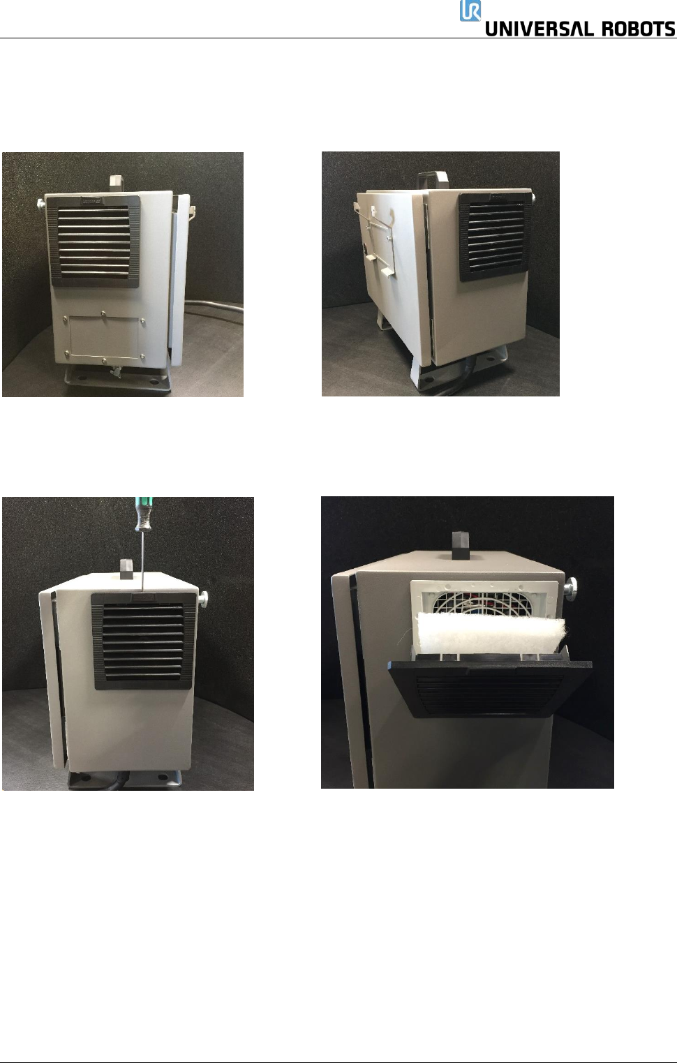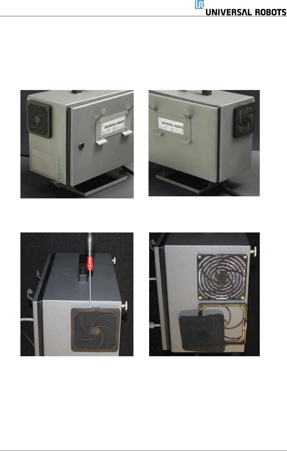 保留所有 权 利 11 Servicemanual_UR3 _en _3.2.6 2.1.4 清洁和更换过 滤器 2.1.4.1 原装控制箱 • 控制箱有两个过滤器, 每侧各安装一个 • 从控制箱中取出过滤器 ,并用低压空气彻底清洁 • 视需要,更换过滤器 • 轻轻地拆下外部塑料框 架,并维护过滤器