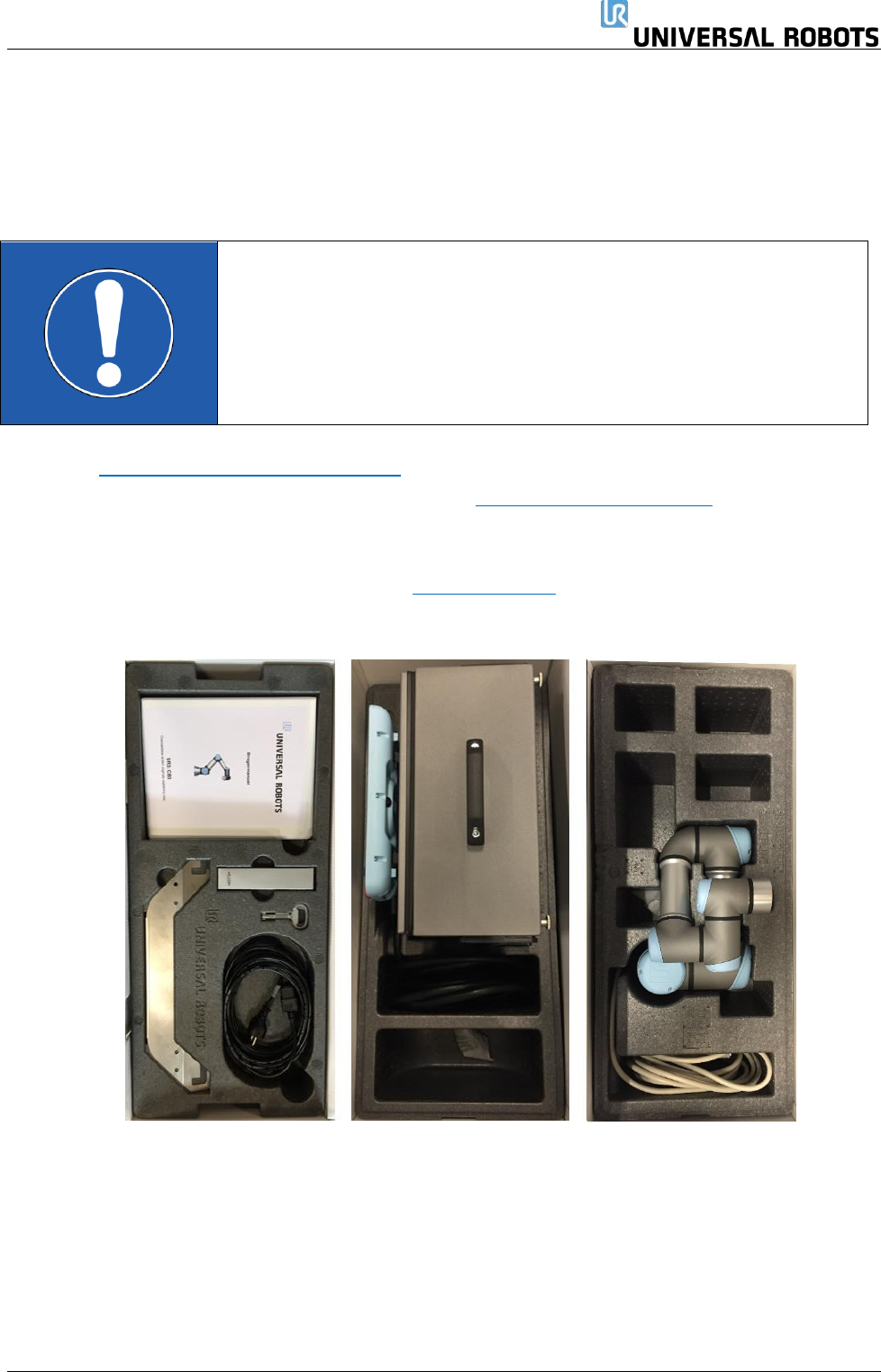 www.universal-robots.com/support/ 下载有关机器人类型和包装材料的正确装箱程序。
