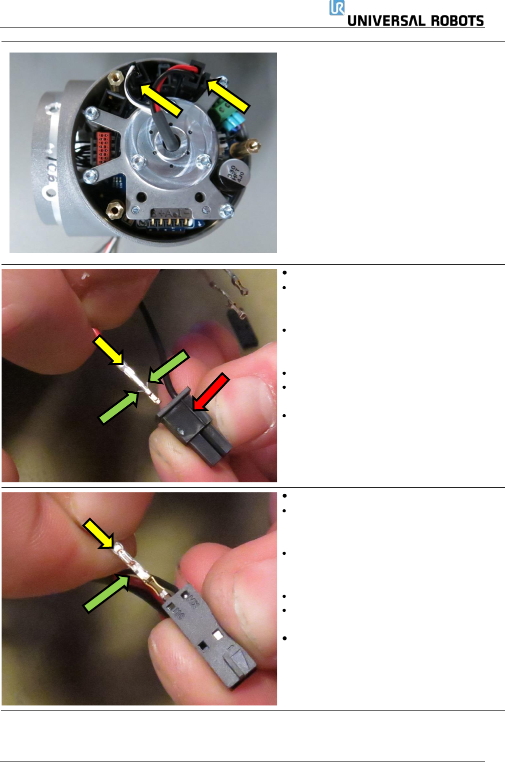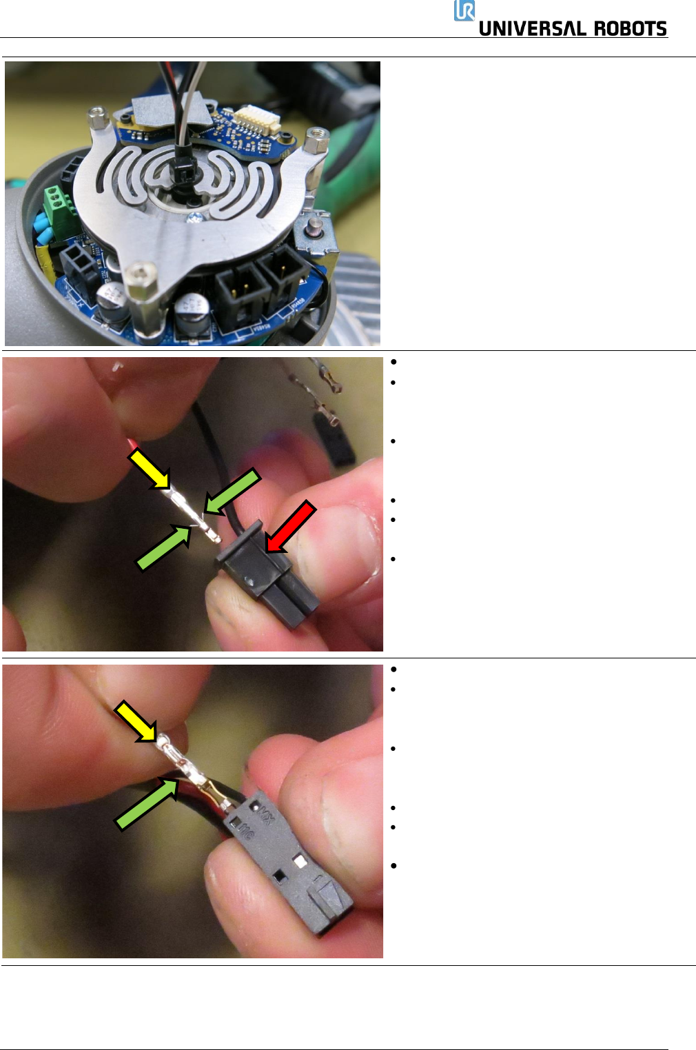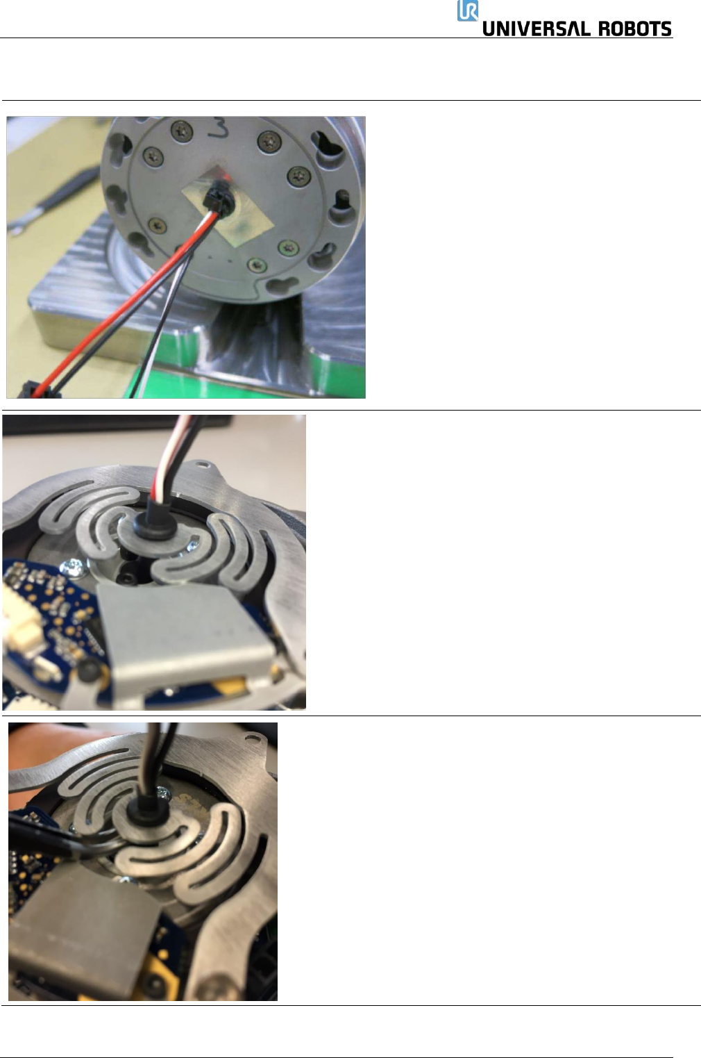 保留所有 权 利 64 Servicemanual_UR3 _en _3.2.6 1 号尺寸 – 零件号码: 103501 • 如图所示,插入线束,电 缆扎带朝向法兰。 • 使用镊子或小一字螺丝刀 ,将垫圈安装到挠 性板中。 • 向下滑动索环时,用镊子 夹住热缩管。