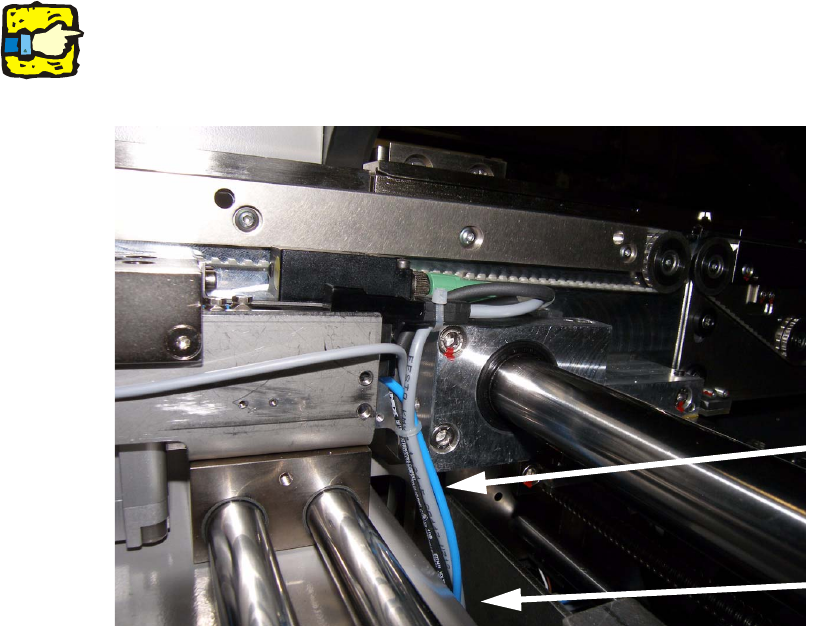: Tauschen Sie die Verschraubung an der linken Transportwange im Ausgabeband (in Transpor-