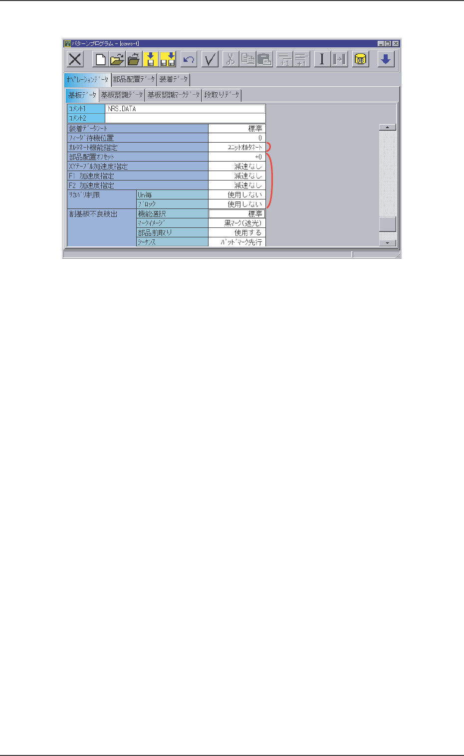 Fig.3B148 “基板データ” タブシート *4 *4 *4 *4 *4 割基板不良検出 割基板不良検出 割基板不良検出 割基板不良検出 割基板不良検出 機能選択 機能選択 機能選択 機能選択 機能選択 マークイメージ、 マークイメージ、 マークイメージ、 マークイメージ、 マークイメージ、 部品前取り、 部品前取り、 部品前取り、 部品前取り、 部品前取り、 シーケンス シーケンス シーケンス シーケンス シーケンス 機能選択を“…