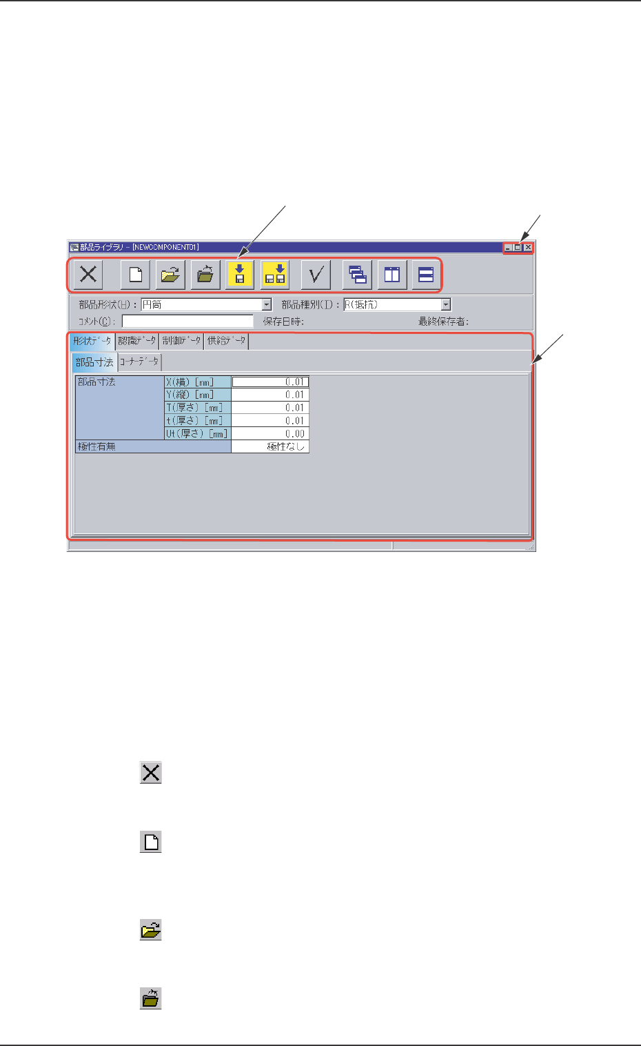“部品ライブラリ”編集画面のツールバーおよびアイコンについて説
