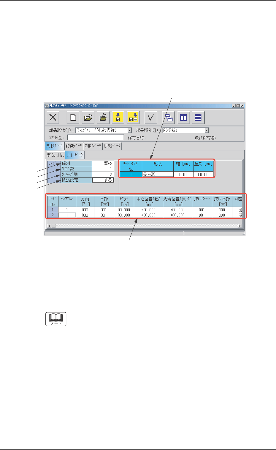 “形状データ”タブシートの[リードデータ]タブを押すと、以下の