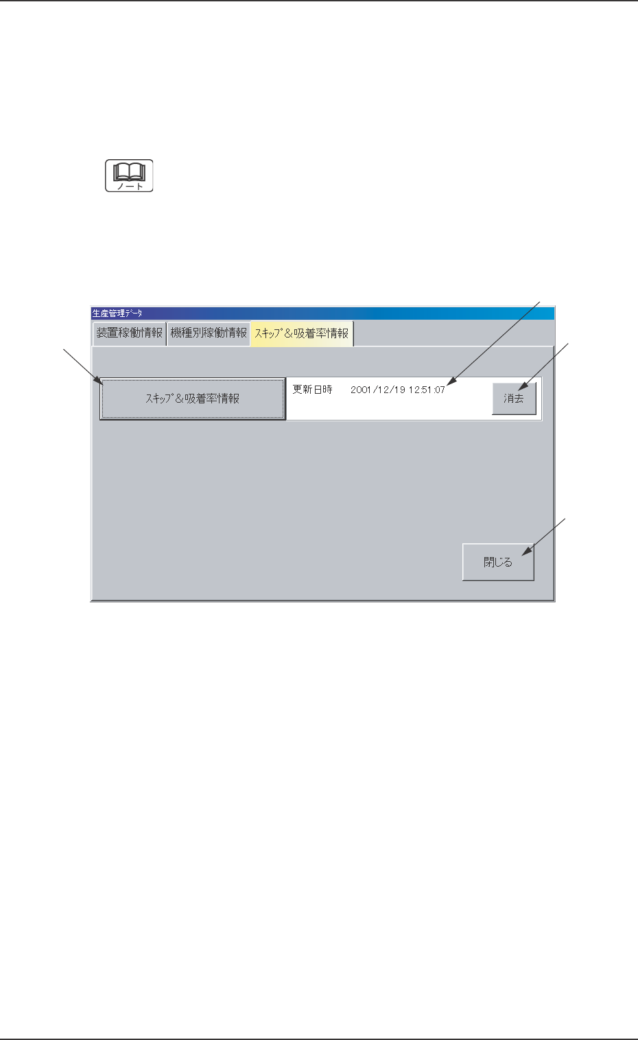 “生産管理データ”メニュー画面で、[スキップ & 吸着率情報]タブ