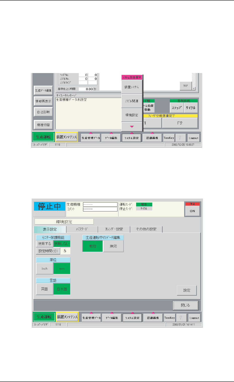 (1) メインメニューバーの[システム設定]ボタンを押すと、“システ