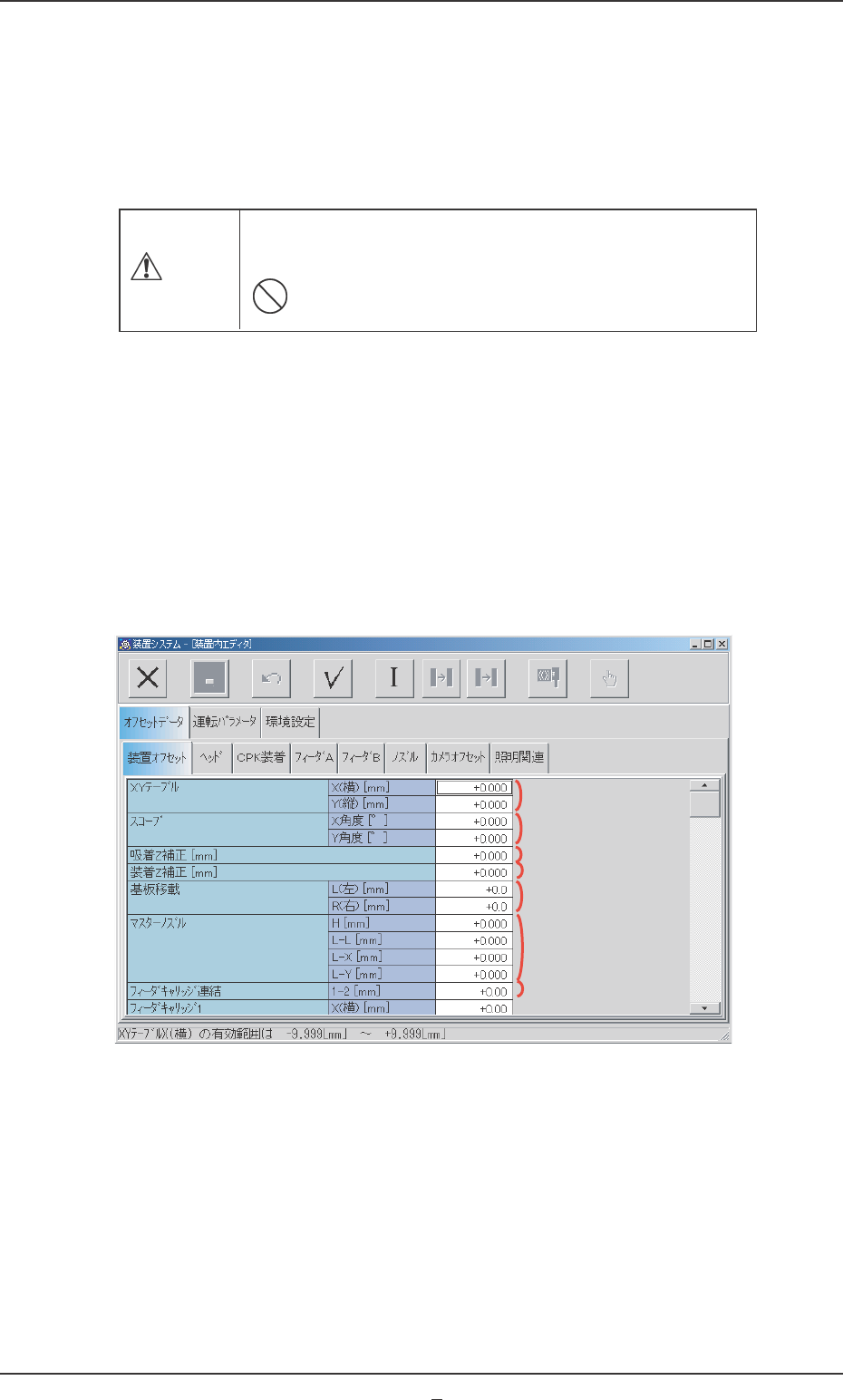 XY テーブル原点とヘッドの装着位置基準とのオフセットデータ