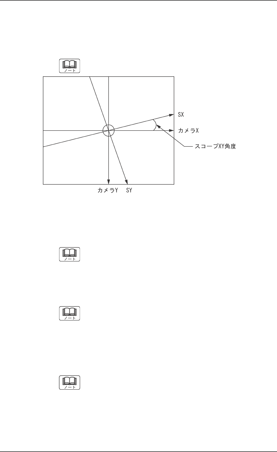 スコープ XY 軸と部品認識カメラ(カメラ 1 高倍)の走査座標 XY