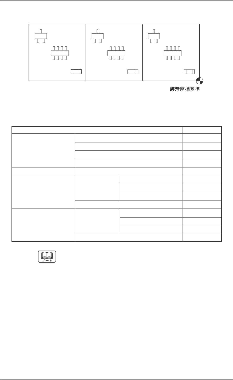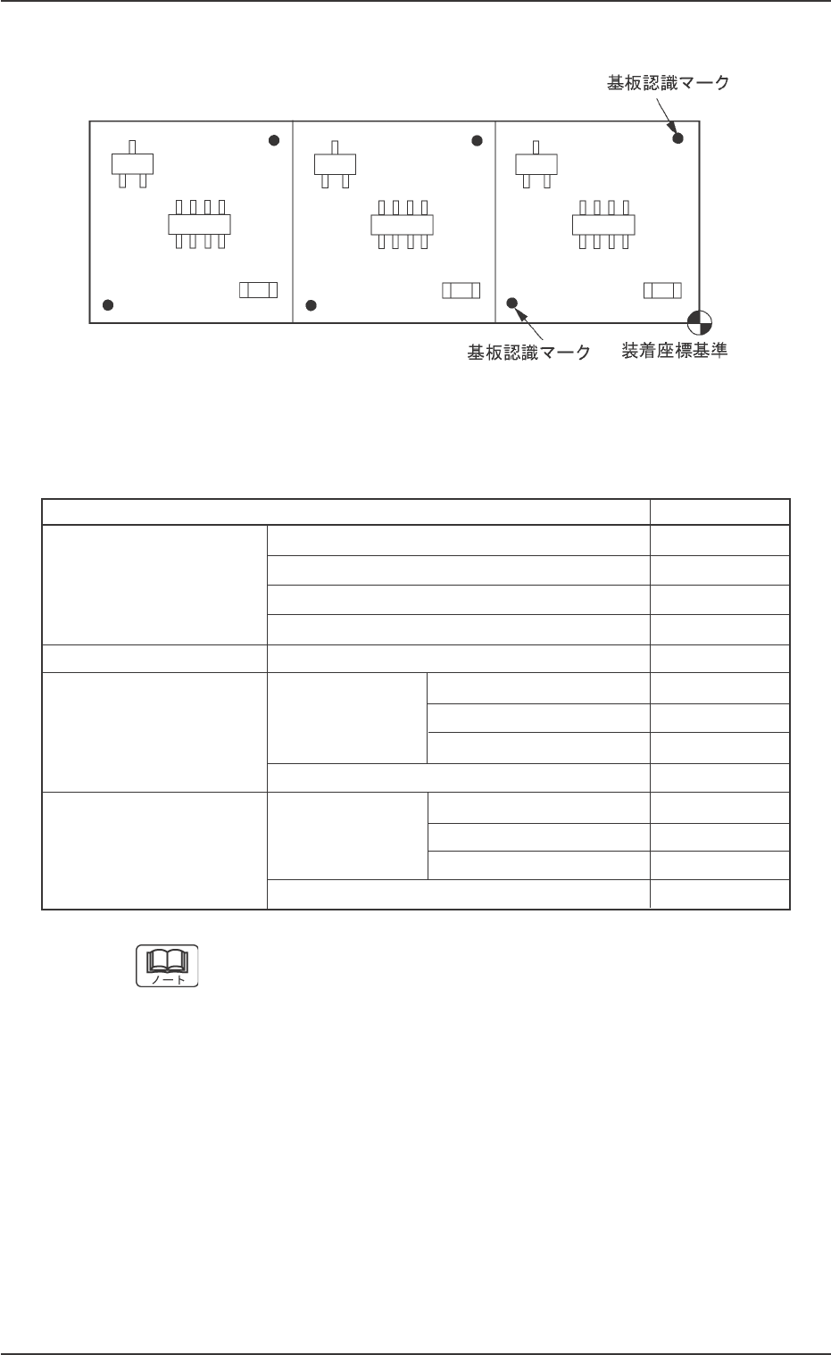 01 1 1-003 2 - 9 AGH01JDTP ( ( ( ( ( 3 3 3 3 3 ) ) ) ) ) 繰返しパターン 繰返しパターン 繰返しパターン 繰返しパターン 繰返しパターン Fig.3B4 必要なデータ一覧 必要なデータ一覧 必要なデータ一覧 必要なデータ一覧 必要なデータ一覧 Table 3B11 パターンプログラム 必要なデータ オペレーションデータ 基板データ ○ 基板認識データ × 基板認識マークデータ × …