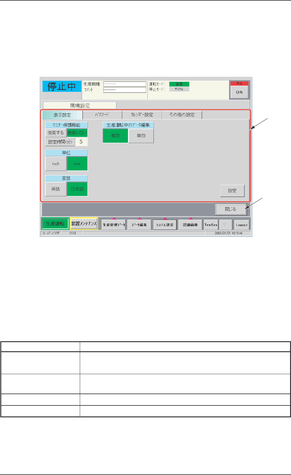 “環境設定”画面は、以下の 4 つのタブシートに分かれており、