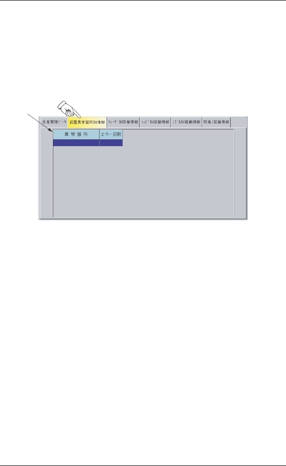 “装置稼働情報”画面で[装置異常箇所別情報]タブを押すと、以下