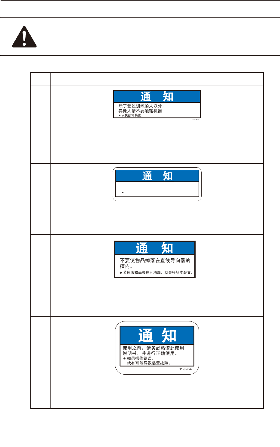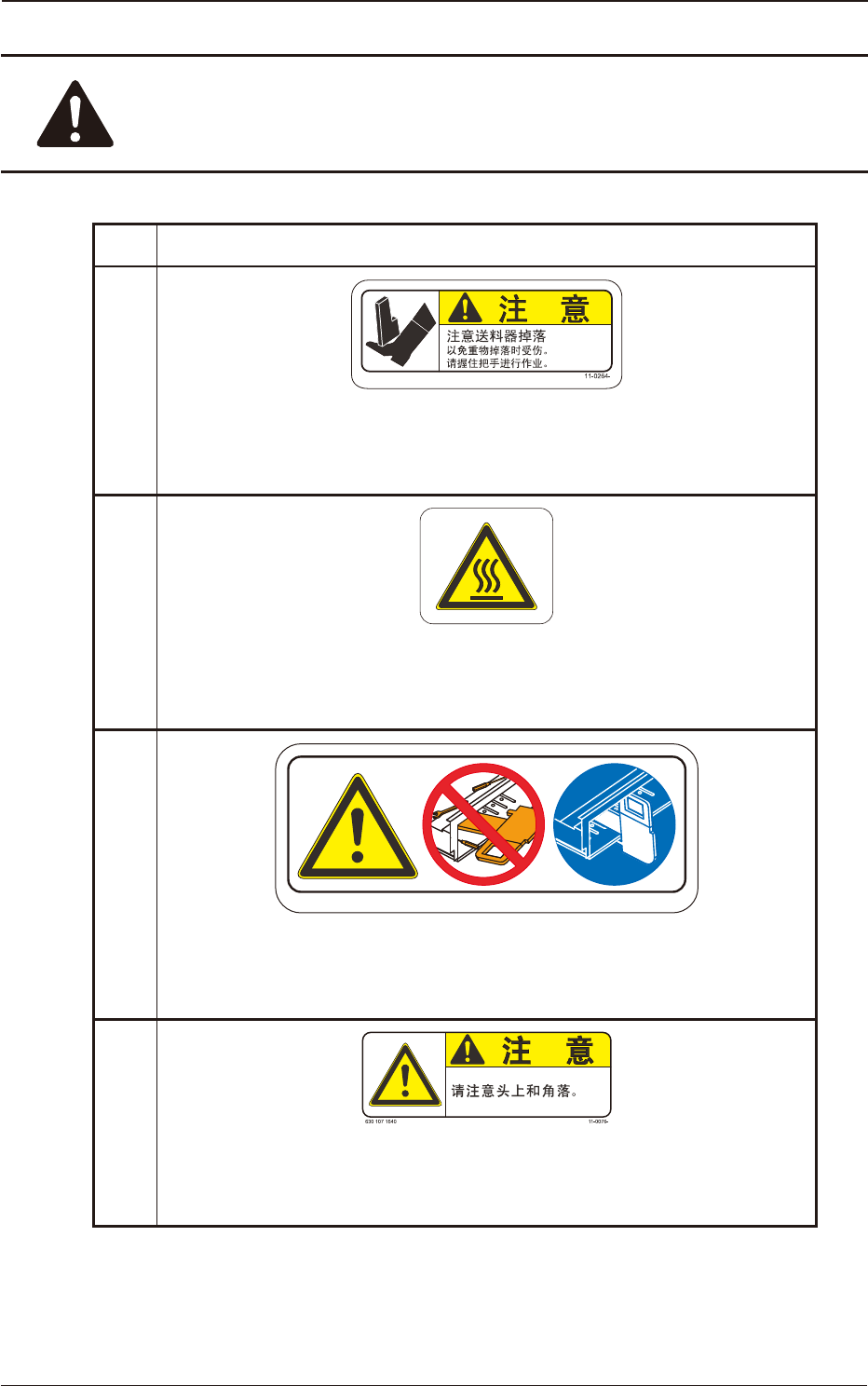 No. 警告标贴与说明