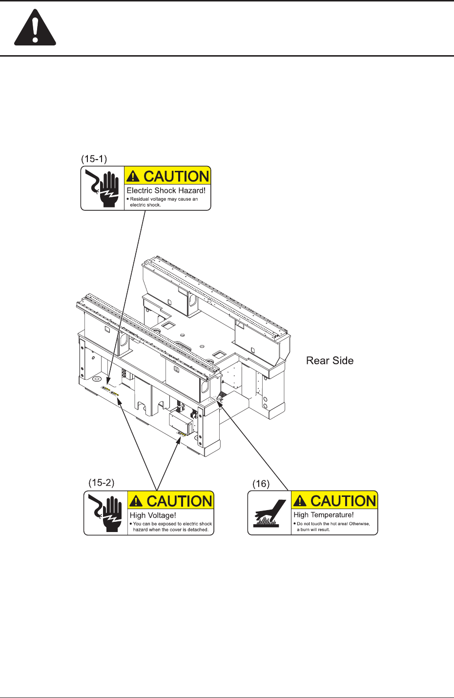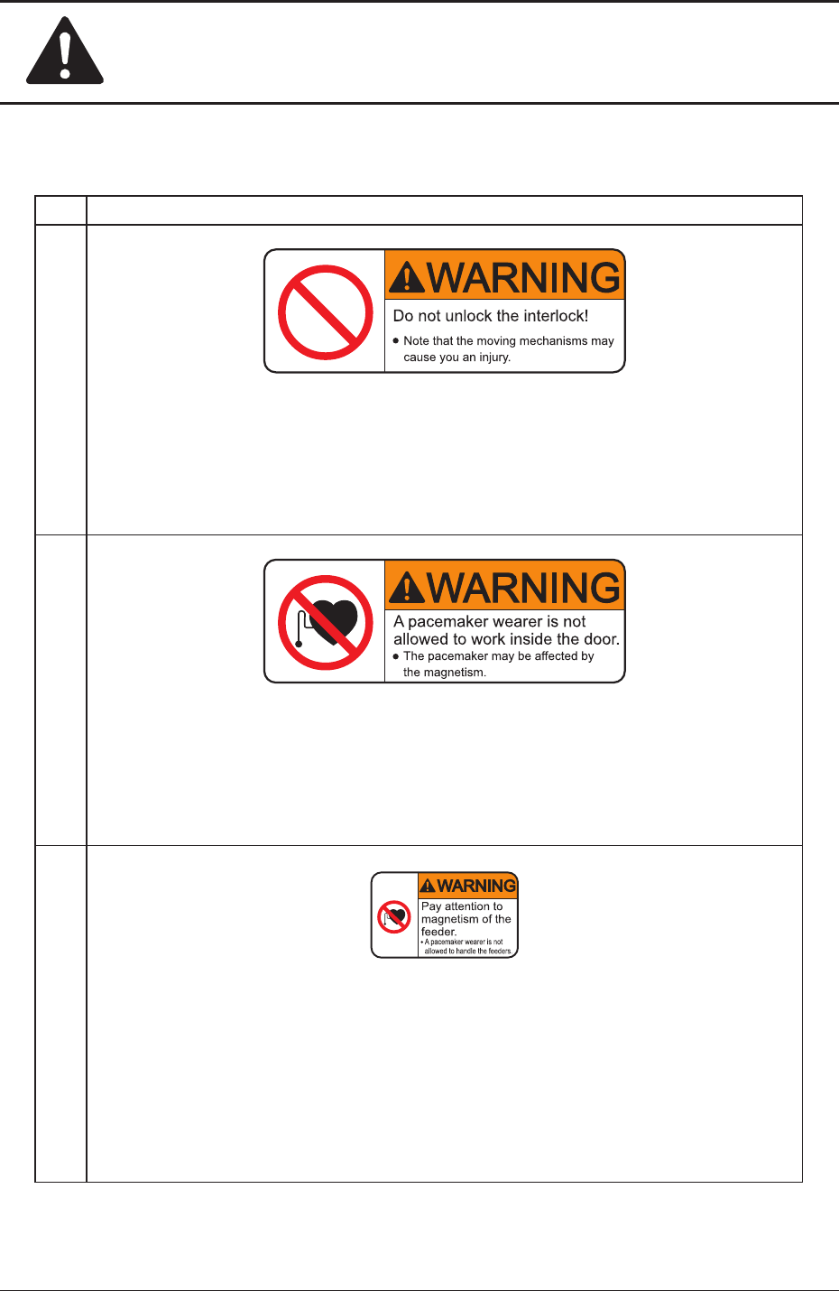 Be sure not to operate the machine with the interlock functions being disabled.